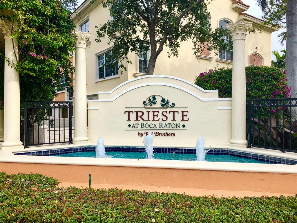 EAST BOCA RATON Luxurious Townhomes! A quaint 12 Acre Community, Trieste, Built by Toll Brothers with 109 units. This Bellavita Model is the LARGEST featuring: 3,244 Liv. Sq.Ft., 3BR/2BA/2 Half BA., 2 Car Garage, Hurricane Impact Glass windows, Sliding Doors, & Window protection, w/ PRIVATE ELEVATOR w/Accessibility on 3 levels, Raised entry level tower w/beautiful arched windows, stately columns, decorative shutters, 2 story Foyer entrance way, w/lower level ''BONUS ROOM'' & EXTRA Storage Closet, Covered Back Lanai w/Built-in Grill & Hand wash sink. Well equipped Gourmet Granite Kitchen, w/Custom cabinets opens to a SUNLIT BREAKFAST BAR area & family room, MAIN LEVEL includes a family room w/powder room, SPACIOUS DINING & LIVING area overlooks Foyer below & is adjacent to dining are