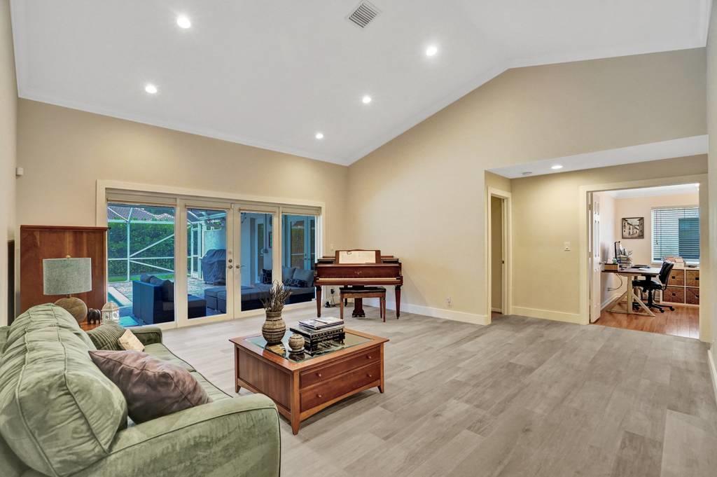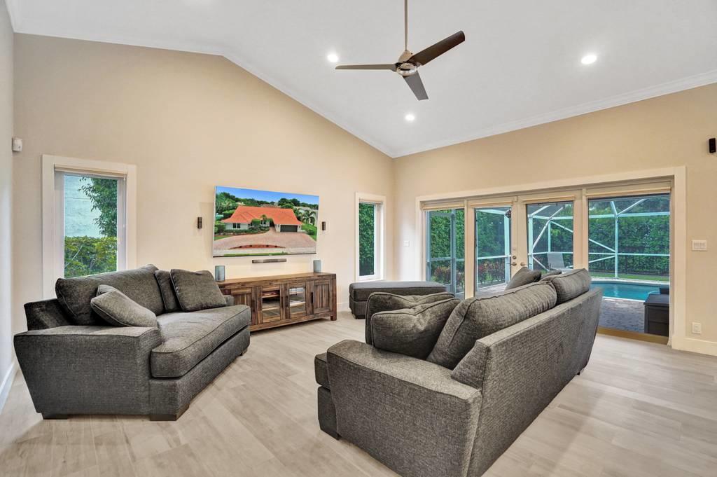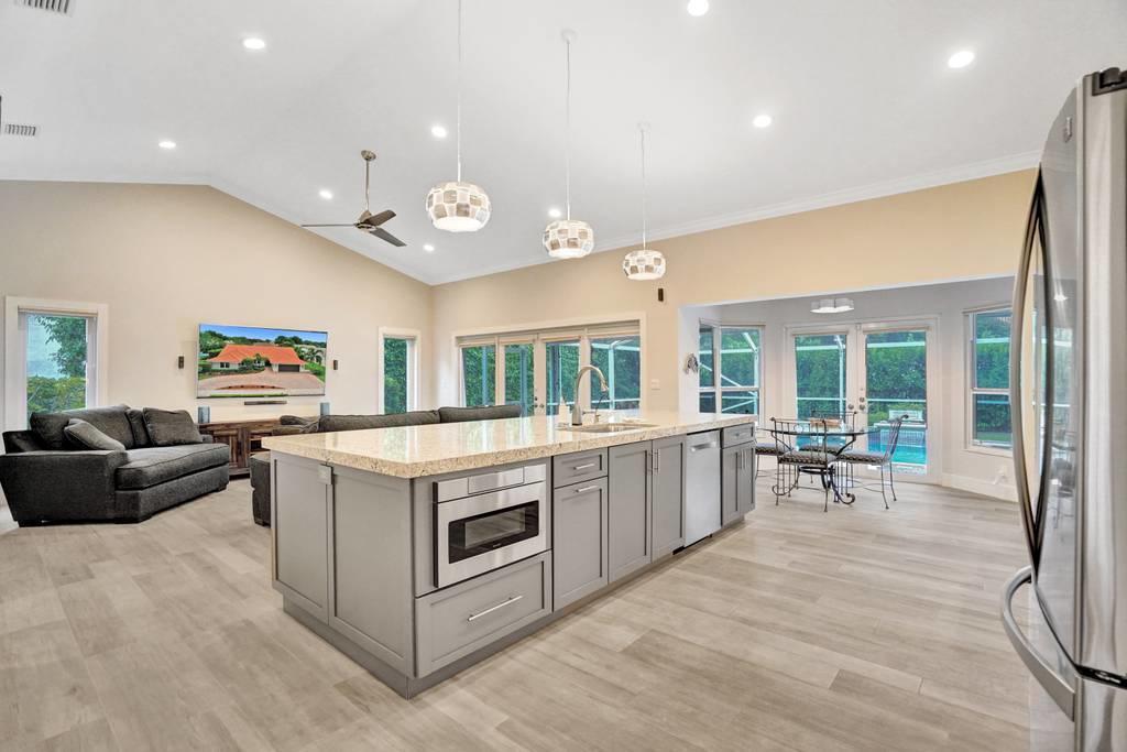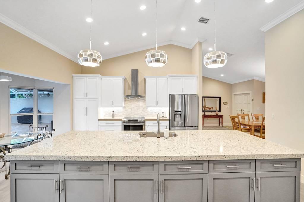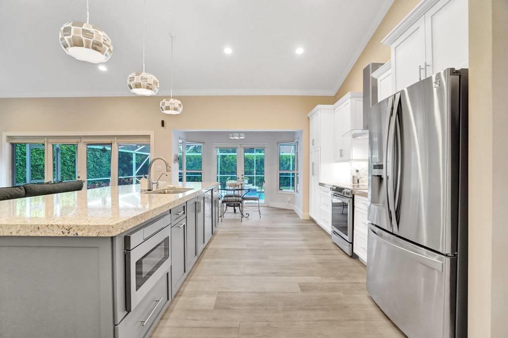 Rare 4/3 home in sought after Glen Oaks section of Colonnade. Large bedrooms, split floor plan. Impact windows and impact french doors leading to the new screened-in lanai and saltwater pool. Walk into an open foyer with dining & living room leading to large newly remodeled kitchen and great room with breakfast nook. Kitchen boasts new Bosch dishwasher, quartz counters, white cabinets, Samsung Chef Collection induction range/oven with Zephyr range hood and Sharp under counter microwave. Two bathrooms have been completely remodeled with seamless shower doors, Toto toilets and quartz counters. New ceramic tile floors in main living areas. Paver circular driveway. Split zone ACs; 2019 and 2010. Large laundry room w/new LG washer/dryer. Walk to Omni, Spanish River and community park!