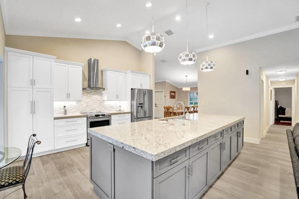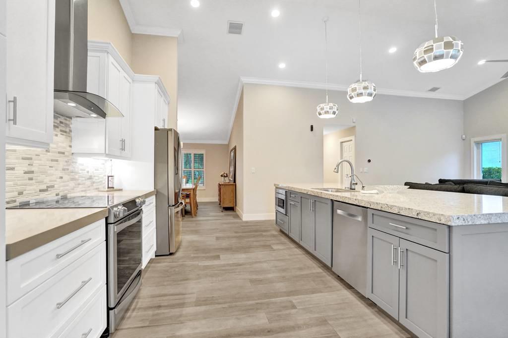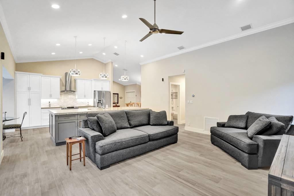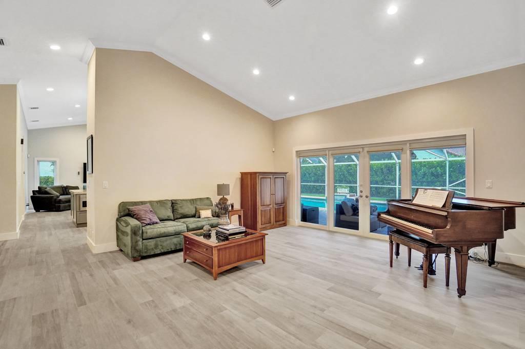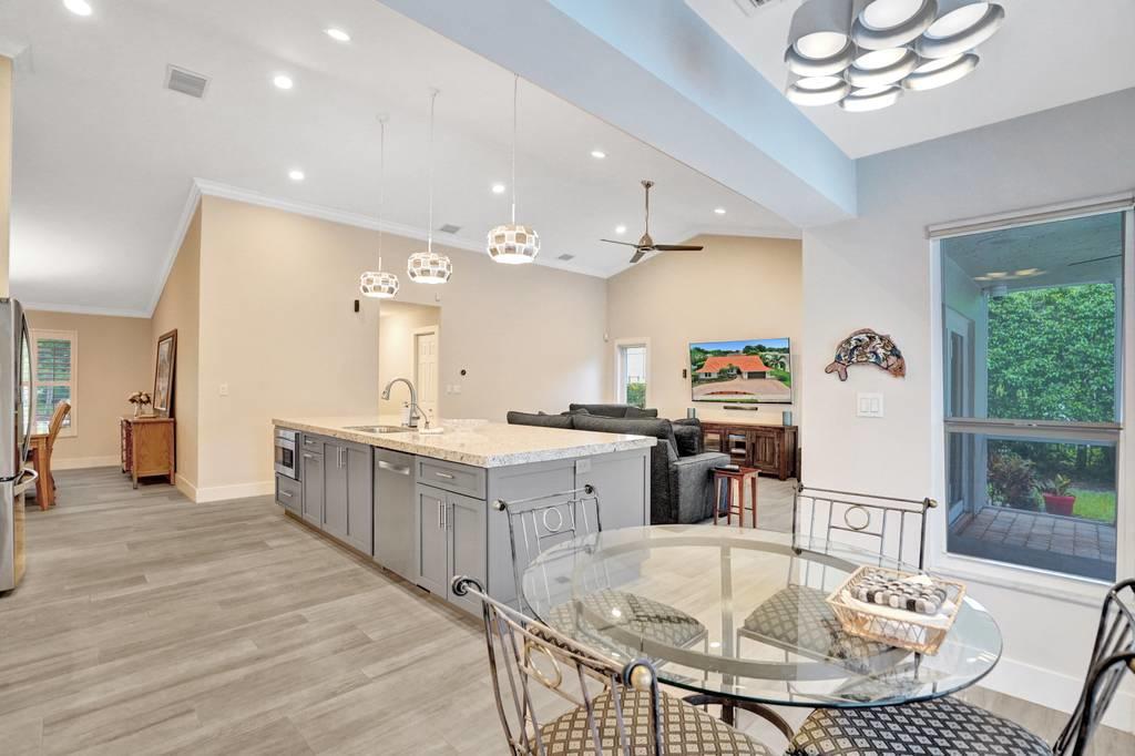 Rare 4/3 home in sought after Glen Oaks section of Colonnade. Large bedrooms, split floor plan. Impact windows and impact french doors leading to the new screened-in lanai and saltwater pool. Walk into an open foyer with dining & living room leading to large newly remodeled kitchen and great room with breakfast nook. Kitchen boasts new Bosch dishwasher, quartz counters, white cabinets, Samsung Chef Collection induction range/oven with Zephyr range hood and Sharp under counter microwave. Two bathrooms have been completely remodeled with seamless shower doors, Toto toilets and quartz counters. New ceramic tile floors in main living areas. Paver circular driveway. Split zone ACs; 2019 and 2010. Large laundry room w/new LG washer/dryer. Walk to Omni, Spanish River and community park!