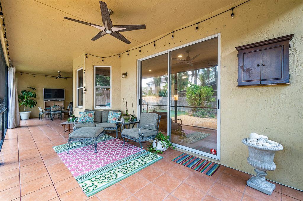 This fabulous home is waiting for you at Symphony Bay in sophisticated Boca Raton. This gated community is a hidden gem not far from the NEW UPTOWN BOCA! This home boasts soaring vaulted ceilings, a light, bright and spacious eat-in kitchen, tile and laminate throughout, formal living and dining areas, an oversized family room and breakfast bar, a huge master bedroom with a walk-in-closet and jacuzzi tub, plus 3 other bedrooms all UPSTAIRS making this home perfect for everyday living and entertaining. Sit outside in your oversized, full length, tiled and screened in covered space while watching the kids make s'mores at the fire pit or practice their golf skills on the putting green.