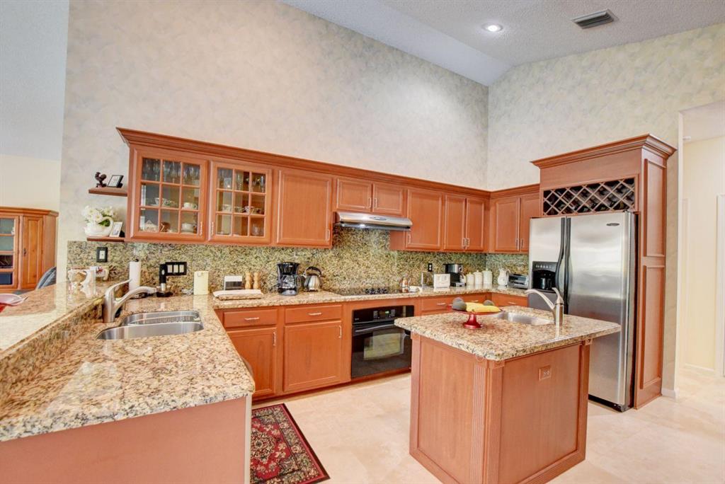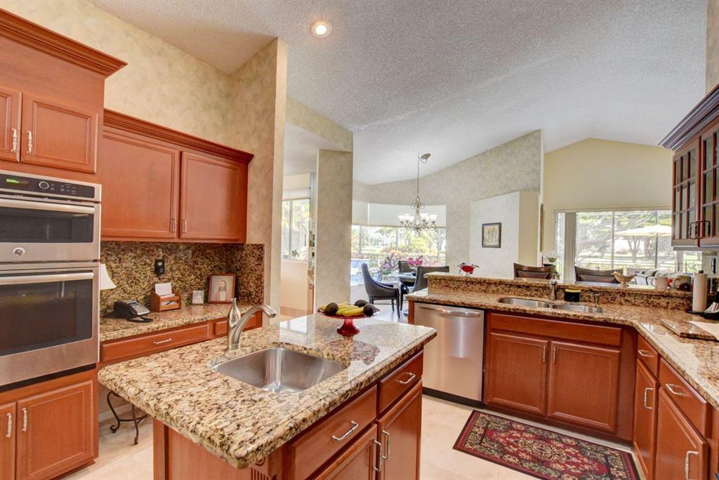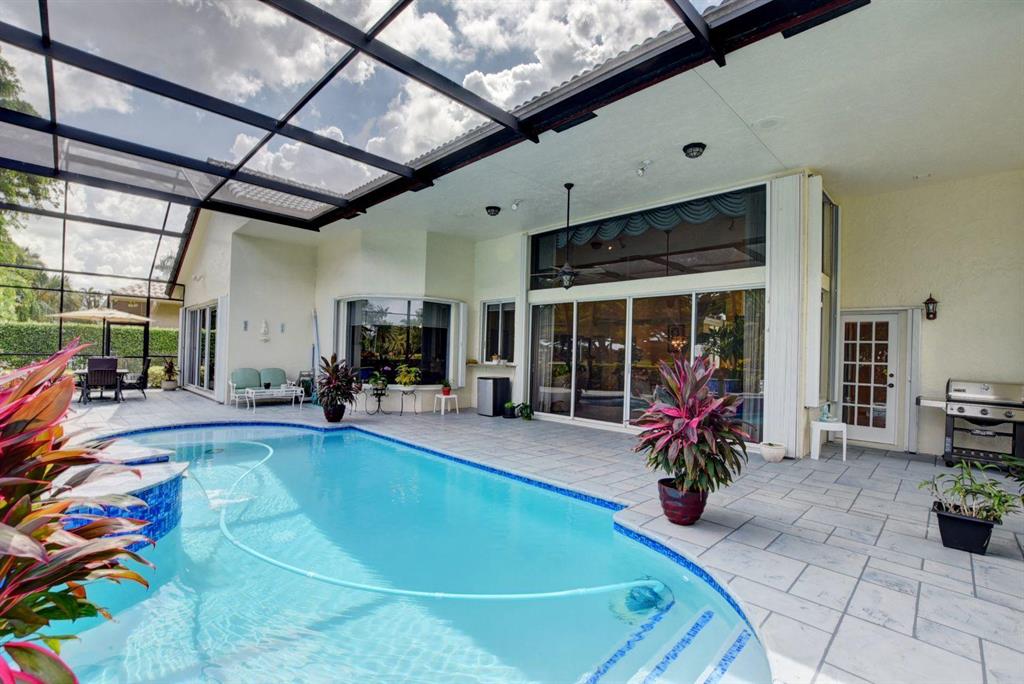 ENJOY A GOLF COURSE VIEW FROM ALMOST EVERY ROOM OF THIS ELEGANT 4 BEDROOM, 3 BATHS HOME, LARGE UPGRADED WOOD AND GRANTIE KITCHEN WITH STAINLESS APPLIANCES. MASTER BEDROOM HAS HIS AND HERS CALIFORNIA CLOSETS. MASTER BATH WITH ROMAN TUB AND SEAMLESS SHOWER. THIS STUNNING HOME HAS EXPEENSIVE RECTIFIED TILE THROUGHOUT. RECTIFIED TILE IN 2ND AND 3RD BATHROOMS. LAMINATE FLOORING IN BEDROOMS. REAL CORAL FIREPLACE WITH ELECTRIC HEATING. VOLUME 30'''' CEILINGS, NEUTRL DECOR, SKYLITES, MASTER'' SUITE W/ DBL SHWRS & COMODES. SPANISH TILE ROOFSREEENED SWIMMING POOL TO DIE FOR WITH GOLF COURSE VIEWS. REDONE IN 2019 WITH GLASS TILES AND CUSTOM LIGHTING. SOUND SYSTEM AND WATER FILTRATION SYSTEM.
