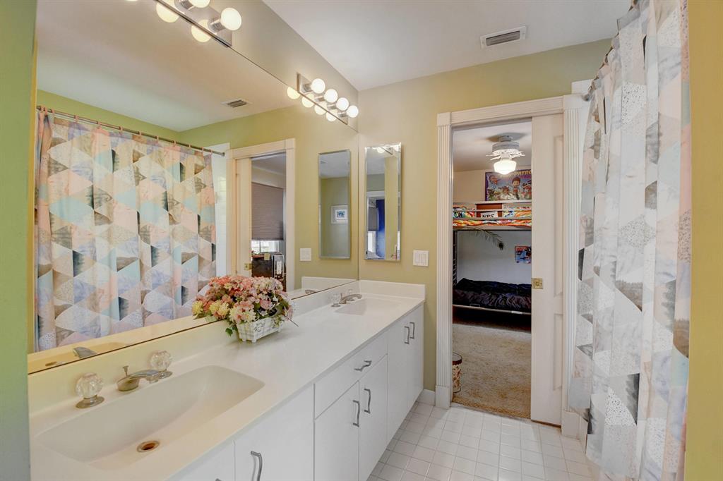 Located on the park on a private interior lot, this light, bright & open townhome of 3 bedrooms & 2 1/2 baths features a remodeled kitchen with unique medium oak-colored Alderwood 42'' cabinetry, stainless steel appliances, granite countertops, tile backsplash & a large pantry. The home offers laminate flooring & neutral carpeting; flat wall finish & crown moldings; and LED high hat lighting. The Master Suite located on the second floor offers a walk-in & 2 hanging closets & a tastefully remodeled contemporary bathroom with porcelain tile floors, glass vessel sinks & white shaker vanities with quartz counters. Impact glass French doors lead to a courtyard of open & covered areas. Warm & cheery & ready to move right into!