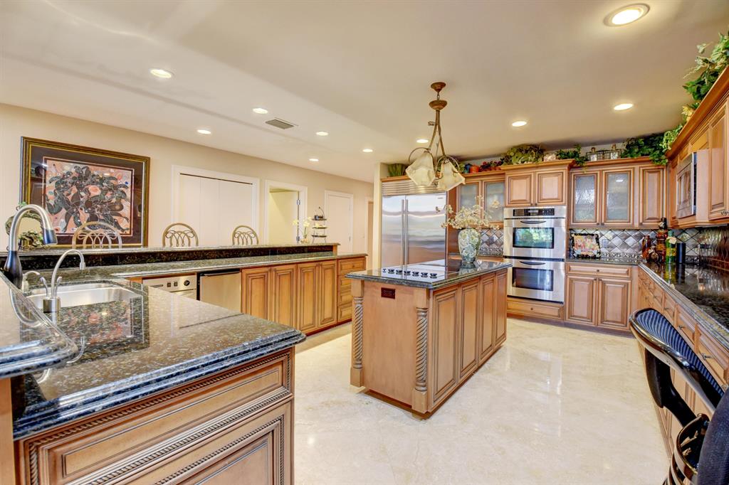 CUSTOM, ONE OF A KIND AND SIMPLY PERFECT. THIS AMAZING FLOOR PLAN WITH A 3 WAY SPLIT, IS A PERFECT HOME FOR GUESTS AND ENTERTAINING. THE FIRST FLOOR BOASTS AN ENORMOUS MASTER SUITE WITH SITTING AREA, LARGE MASTER BATH AND FITTED WALK-IN CLOSET WITH A GRAND AND GORGEOUS BUILT-IN OFFICE. ON THE OTHER SIDE OF THE FIRST FLOOR, YOU WILL FIND 2 CLUSTERS, EACH WITH 2 BEDROOMS AND THEIR OWN GRAND BATHROOMS. CHEF'S KITCHEN WITH BUILT-IN SUB ZERO AND CUSTOM APPLIANCES AND CABINETS. THE THEATER, FIREPLACE, WINE CLOSET AND WET BAR IN THE LIVING ROOM ARE ADDED TOUCHES TO GREAT ENTERTAINING. THE UPSTAIRS IS HOME TO THE LOFT WHERE HANGING OUT, PLAYING CARDS OR POOL IS IDEAL. INCREDIBLE FLOOR PLAN... SEE SUPPLEMENT FOR MORE UPGRADES...