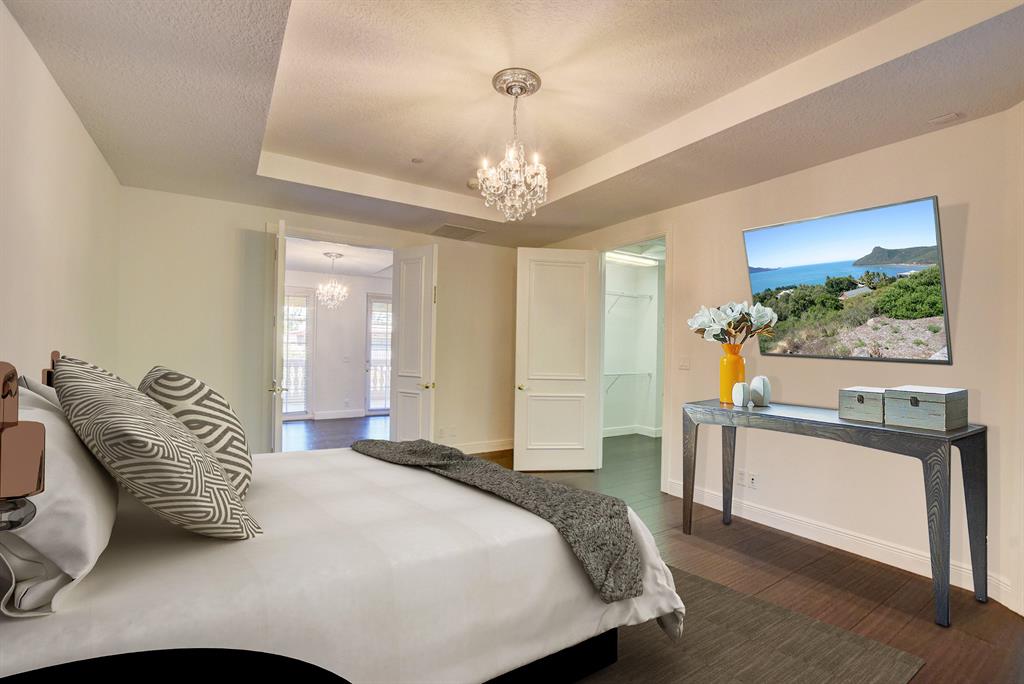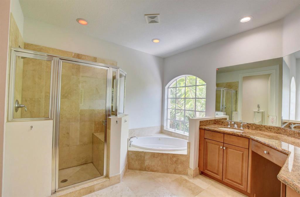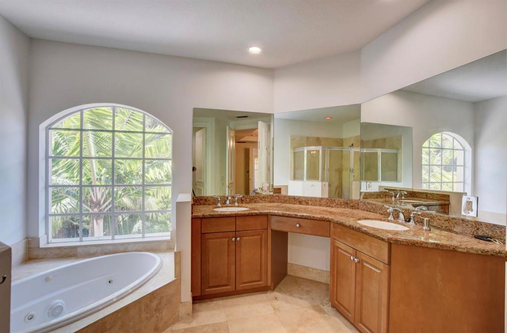 Exquisite 3-story townhome in east Boca bordered by a lush tropical forest. Entire 3rd floor master suite designed with bamboo wood floors, a his/hers large closet, separate sitting room, jacuzzi and gigantic balcony. This 3000+ sqft home has 2 brand new A/C's w/Nest thermostats, 2 family rooms, either Saturnia tile or wood floor (no carpet), oversized hot water heater, whole home SquareD surge protection with Emporia Vue energy monitor, USB outlet ports, wired for ethernet, storage/play room under the stairs, crown molding, recessed lighting, impact windows, elevator, SS appliances, & spacious laundry room. 2nd floor has a den/office/4th br (no closet). Impact French doors throughout. This is the best floor plan, view & location in the subdivision!