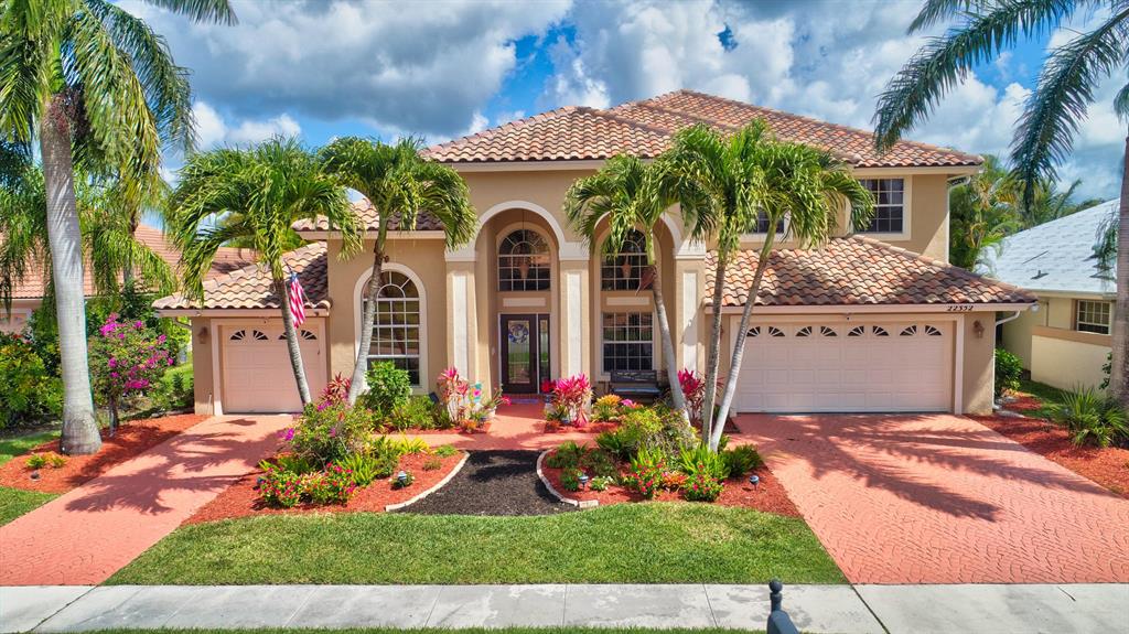This home is a 6 bedrooms, 4 bathroom showpiece. 3 car garage. Full sized heated pool w/ Travertine deck that overlooks premium lake view. Kitchen with upgrades, Granite and Tumbled marble. High end wood floors in master bedroom. Upgraded wood and granite bathroom and tiled seamless shower. Newer flooring on stairs. High vaulted ceilings. 2019 $45K roof. Two A/C units 2013 and 2014. This is a real beauty. A true 6 bedroom home. Low HOA. 'Walk or bike to 3 'A' Rated Schools. 1 mile away from south county park with outside Amphitheater, dog park,27 hole golf course, nature center, water park, tennis. Great area. Must see!!