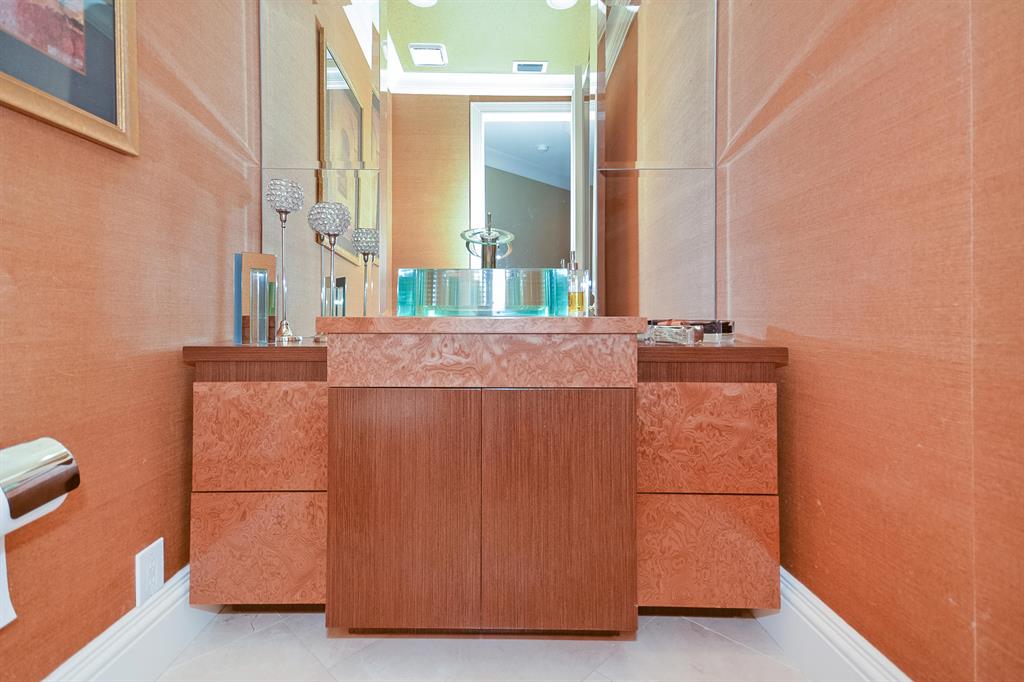 This prestigious residence features 6 bedrooms, 7 1/2 baths and over 6,000 square feet of light filled air-conditioned living space. The dramatic bougainvillea covered gated courtyard entrance opens to grand formal living room with fireplace, formal dining room and rich wood paneled office. A custom contemporary style gourmet kitchen overlooks the breakfast area and family room. The first floor master wing includes a grand master suite with luxurious his and her baths and generous closets. Two separate bedroom wings create privacy for family and guest alike.The second floor features a VIP guest suite and a home theater. The lushly landscaped property features resort style pool and waterfall, covered loggia and pristine lake views. This information is herein is deemed reliable and subject