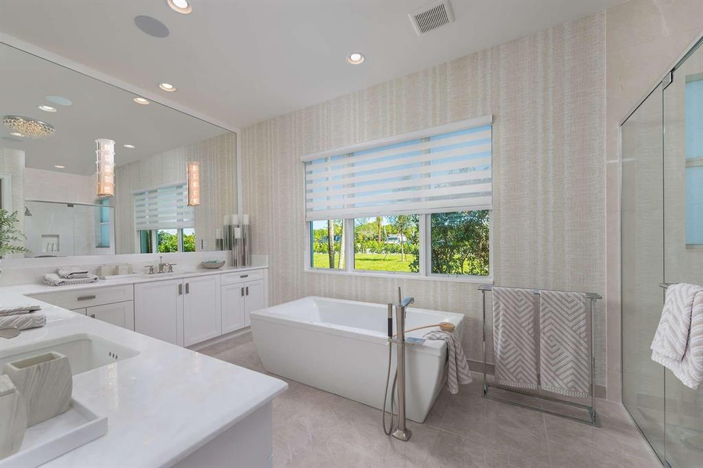 FULLY FURNISHED BUILDER MODEL HOME with lake view - Professionally decorated. Virtual and In-Person Showings available. Nov/Dec 2020 delivery. Impact Glass Windows and Doors. Model pool with side planters. 24 x 24 Neutra White marble floors throughout living areas. Kitchen includes Sub Zero, Bosch and Wolf appliances, Quartz Pure White countertops with Quartz Sleek Concrete countertops on the island and buffet counter. Master Bath offers Marble Corsica Cream 12X24 Porcelain shower walls to ceiling, Boca Raton Maple Artic White cabinets and Mystery White Marble countertops. All Secondary Baths have porcelain tile floors, granite or quartz vanity top and Moen faucets. Please call for a full list of upgrades.