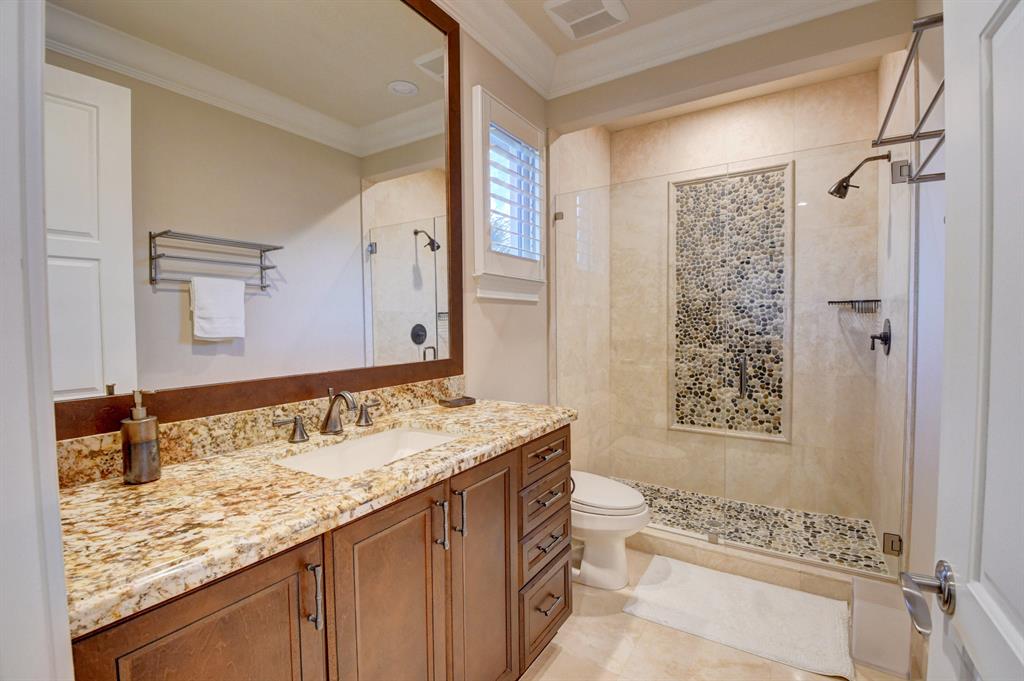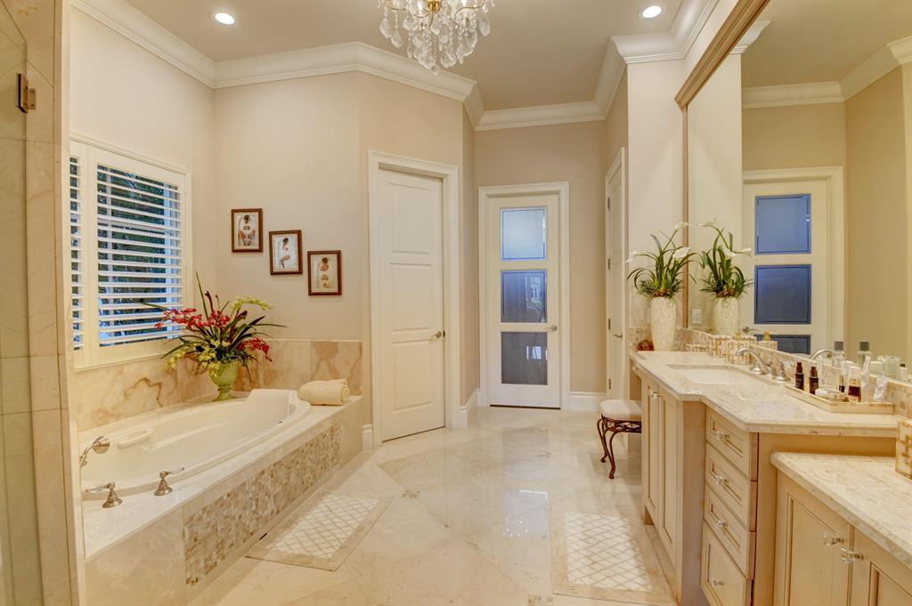 Totally renovated (down to studs) & expanded like new! This home has every extra & superb southern lake & golf views. Elevator, hurricane impact glass, theater, generator, Crestron smart system, LED lighting, Platinum Mosquito Protection, SOLAR panels for energy efficiency, & more. 1st floor master suite with his & her baths & large custom closets. Euro-style kitchen with quartz counters, Wolf gas range, convection oven, Sub-Zero refrigerator, Bosch dishwasher, and wine fridge. Loft with theater, exercise area & huge terrace. 2 laundry rooms. All guest bedrooms are en-suite. Southern exposure for resort-style pool, patios, terrace, outdoor kitchen, and prime lake & golf views.