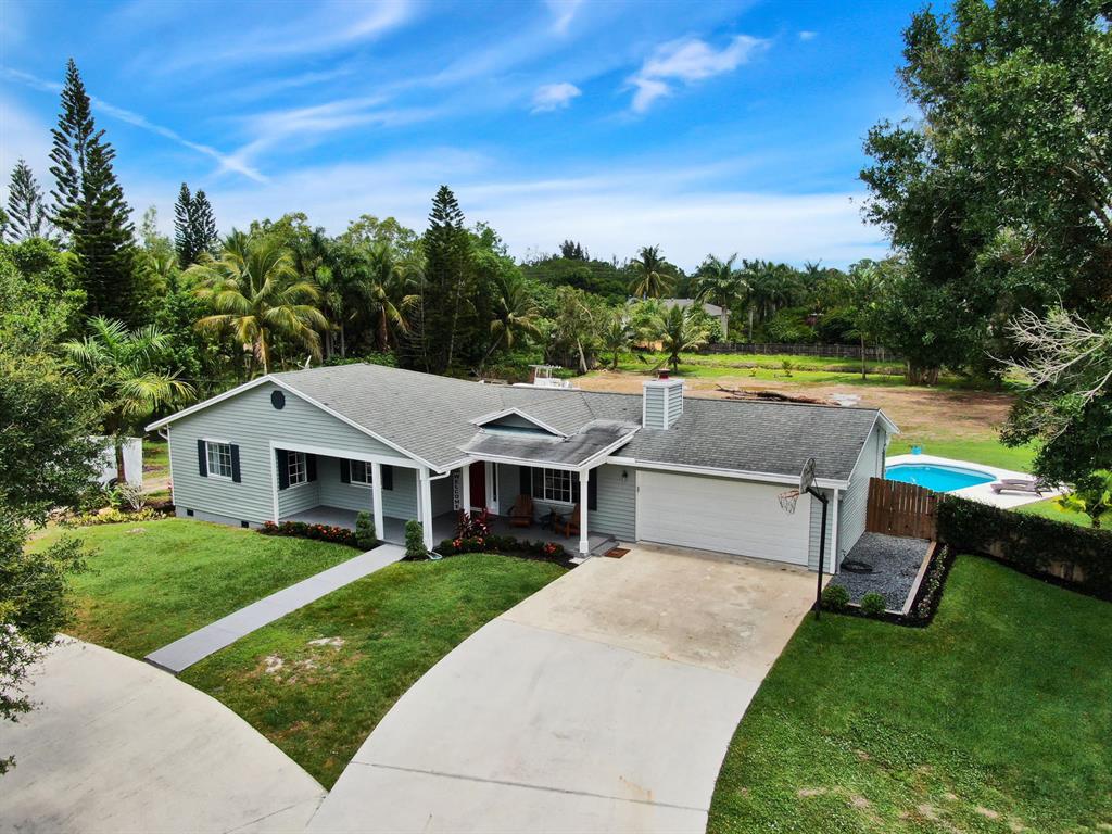 Sophisticated style meets classic living in this charming ranch home! Totally renovated and maintained to perfection, including open floor plan, beautiful kitchen with island, updated bathrooms, new wood vinyl flooring, a real wood burning fire place and attached two car garage. Located on a paved road with a concrete circular driveway with plenty of parking! Perfectly situated on 1.25 acres. Plant your own garden or enjoy the great outdoor space to run, play games, take a dip in the pool and gather with friends on the patio. This is the perfect place to entertain or enjoy peace and quiet to listen to nature. The best location in the acreage, easy commute, close to dining and shopping. It doesn't get any better than this!
