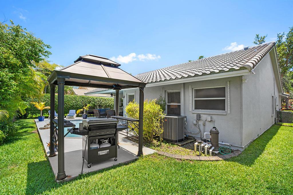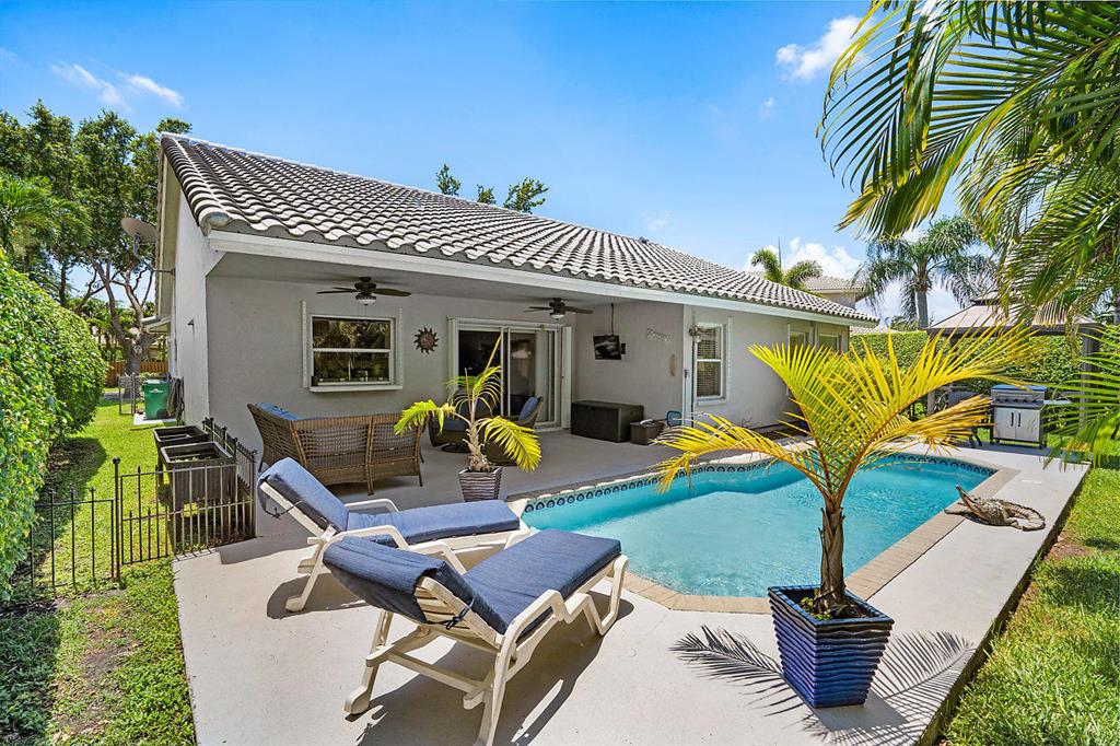 This gorgeous home features southern farmhouse charm with tons of curb appeal. Open and bright it features a modern open concept floor plan with a fully upgraded eat-in kitchen and spacious great room. Master suite is ENORMOUS with a beautiful large bath. Split floor plan offers two large bedrooms with ample closets and bathroom. Outdoor oasis with a lush private tropical patio, sitting area, sparkling pool, and BBQ area! Everyday is a vacation in this backyard. Established neighborhood with LOW HOA Excellent school, close to major highways, shopping and parks. Exceptionally maintained home in move in condition!