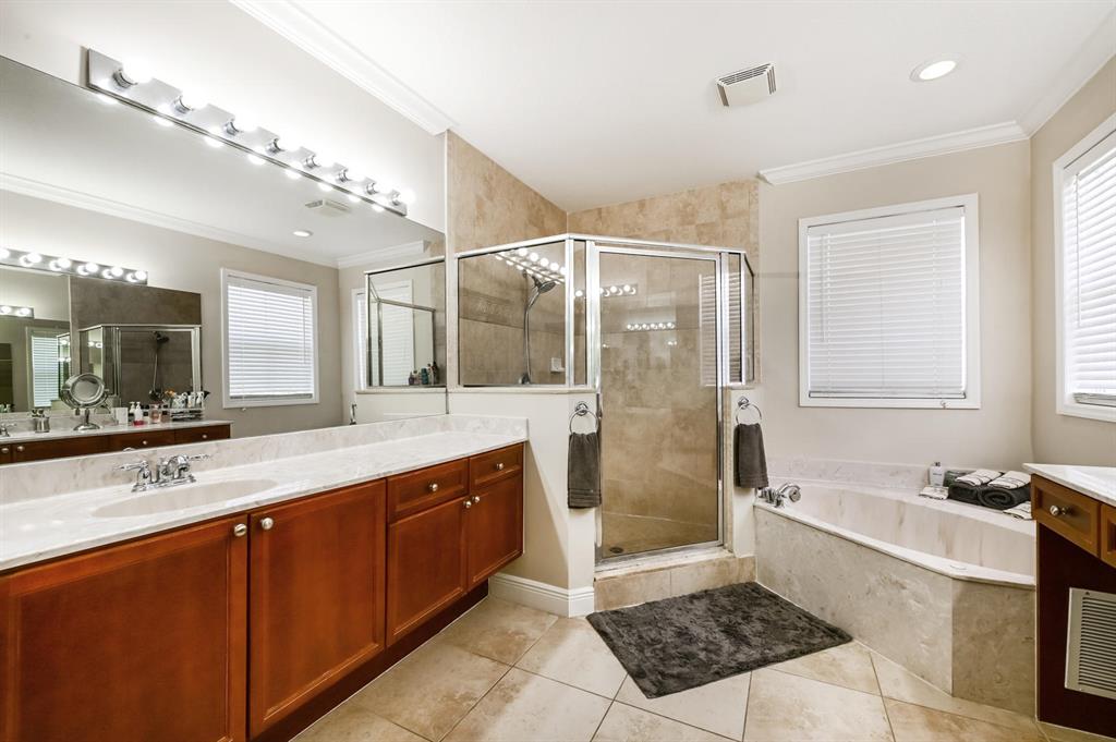 Gorgeous lakefront estate home with beautiful pool and 3 car garage in Palisades an upscale, quaint (only 41 homes), gated community in central West Palm Beach, next to Breakers West! Come inside and be greeted by spacious living areas with diagonal 18X18 tile and crown molding throughout, tons of natural light and an eat-in kitchen which boasts stainless steel appliances, granite counters, wood cabinetry and a lovely snack bar. This home offers 5 bedrooms plus a loft, (1 bedroom & full bath downstairs which is a perfect in-law suite) all of the bedrooms are spacious & offer ample closet space. The master suite has a huge walk-in closet and is complete with a luxurious master bathroom. Outside you will enjoy a beautiful pool with 2 story screen enclosure and very private, lakefront yard.