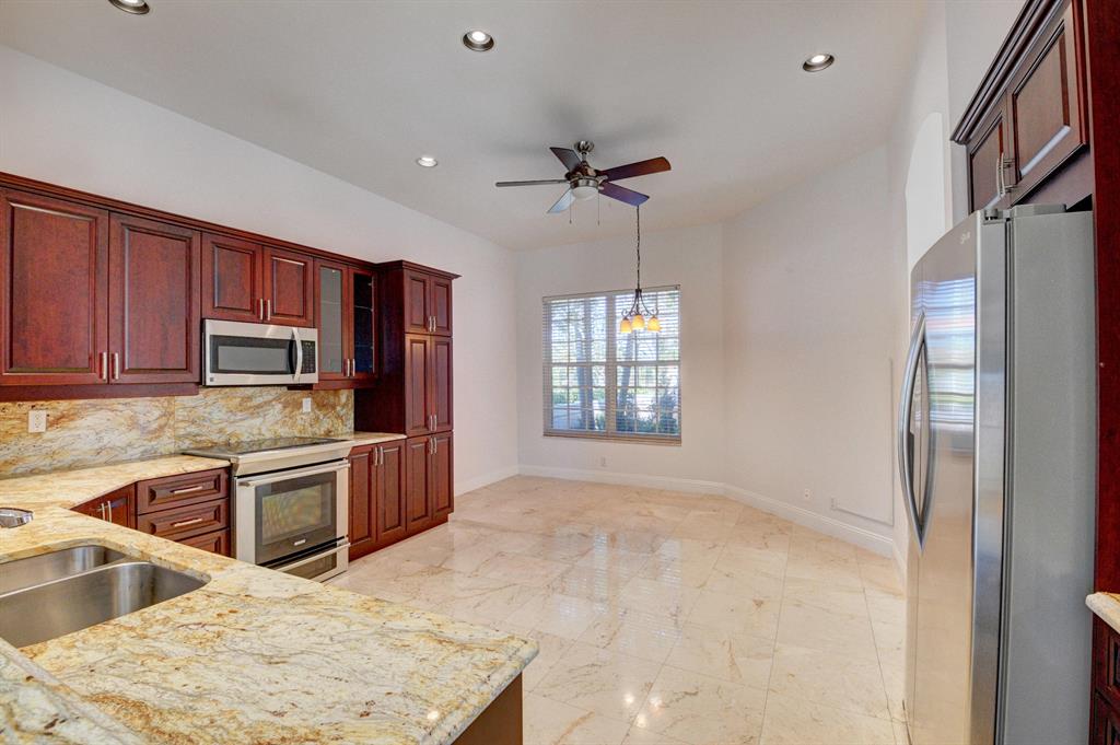 This incredible 3 bedroom 3 bath Ventura model in Santa Barbara is on a prime lakefront corner lot and features many appointments and upgrades. Including a new roof (2016), Impact windows, freshly painted interior, marble flooring, granite countertops in the gourmet kitchen, retractable awning, and marble pavers surrounding the pool. Spacious Master bedroom and Master bath, featuring dual sinks, granite countertops, frameless shower and roman tub. Enjoy sunsets over the lake from your screened Lanai. 2 car tiled garage with outfitted storage. Santa Barbara is a centrally located gated community that features a stunning clubhouse with a fitness center, library, card, media and billiard rooms, entertainment ballroom, full kitchen, picturesque pool, and tennis complex.