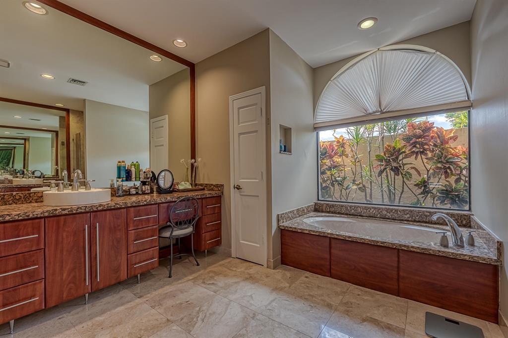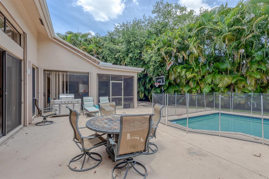 Spectacular 3 bedroom, 3 full bathroom corner lot pool home. Located in the prestigious community of Encantada-Boca Pointe. Wow!! Large circular driveway in front of house plus 2 car garage on the side. This move-in ready home offers a modern kitchen w/ white cabinets, granite countertops, and island that opens up to the family room. Newer kitchen appliances. Newer A/C, newer water heater, and pool heater. Tile throughout the house. Modern wood type flooring in bedrooms. Built in closets. Open floor plan with lots of natural sunlight. Neutral white color throughout the house. Corner view of lake from the master bedroom. Automated AC, garage, Jacuzzi, Pool, and alarm from phone apps. Enjoy your private tropical backyard, heated pool and Jacuzzi. Screened patio. Home generator.