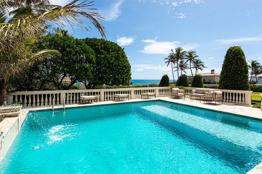 Spectacular Oceanfront Mizner compound with tennis court, sunrise and sunset swimming pools, and direct beachfront cabana. Gorgeous landmarked Estate with extensive and rich history features stunning architectural details and oversized fireplaces. Perfect for entertaining with sprawling grounds and large oceanfront dining room, library, and grand salon with wet bar. Expansive oceanfront Owner's Wing with sitting room, dual baths, study, and large open terrace. Highlights include 7+ bedrooms, 9 baths, 3 powder rooms, 3 car garage, and tennis pavilion. Fantastic Estate Section location with 180 feet+/- of ocean frontage.