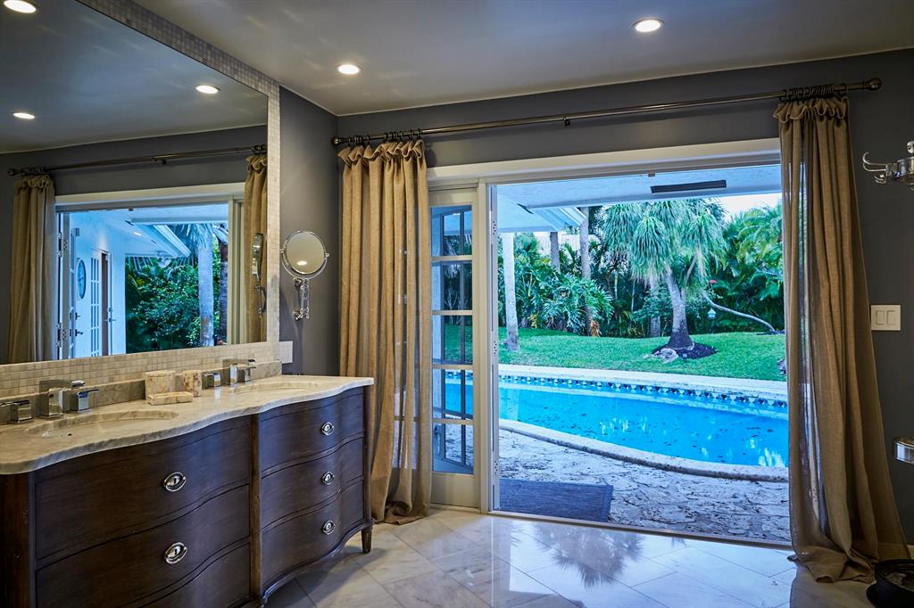 Beautiful one story house featuring 4 bedrooms and 4 baths plus office/den fully renovated by a European designer with marble and engineered wooden floors and a large chef's kitchen designed for a synergy of indoor/outdoor living. All rooms open via French doors to a private pool and garden area with an outside grill, dining and living space surrounded by fruit trees. The full renovation includes hurricane impact windows and doors, new roofing, garage doors, floors, electrical plumbing, dual AC, water heater, a new pool heating system, LED lights and an electric car charger. The information herein is deemed reliable and subject to errors, omissions and changes without notice. All measurements are approximate.