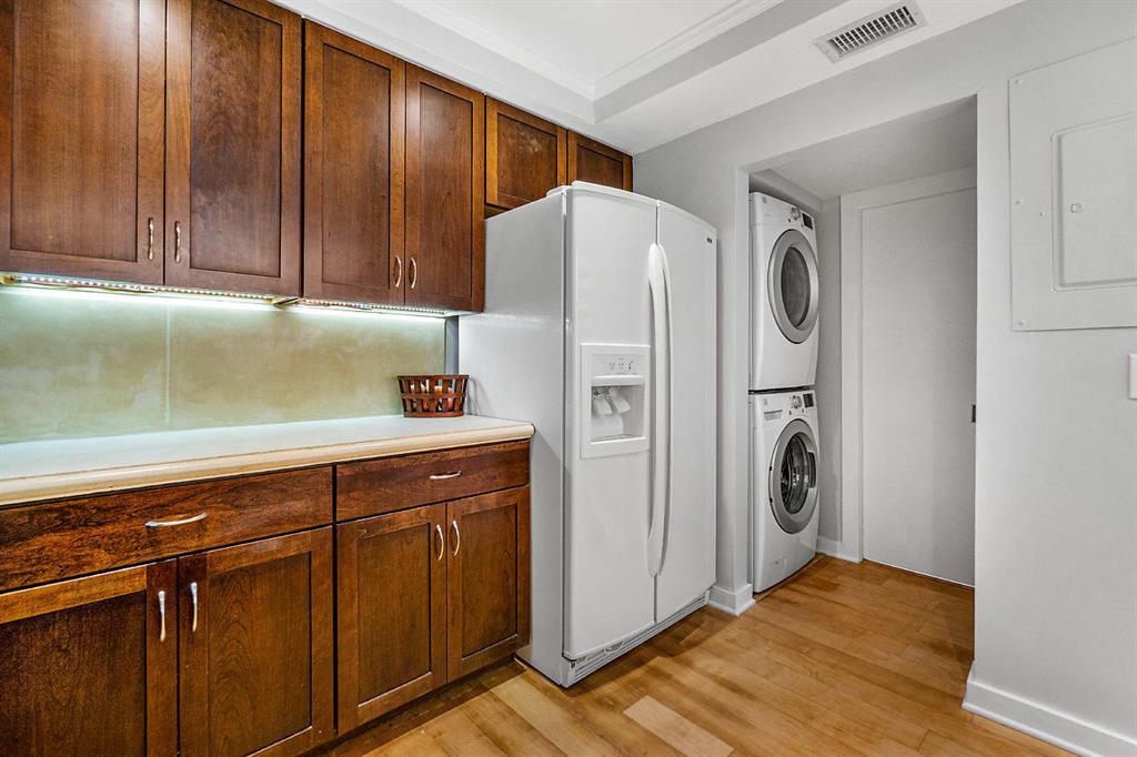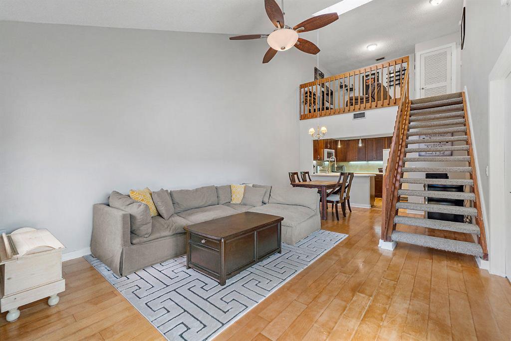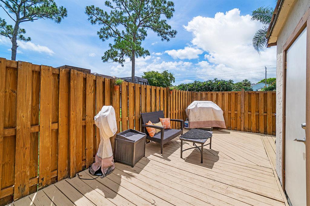MUST SEE! Move-in ready, meticulously maintained, updated 2BR/2BA/loft townhome with large private entertaining patio in the charming community of Lake Colony. Master bedroom downstairs with walk in closet and organizer, master bath has dual vanities, large walk in shower with dual shower heads. Maple wood flooring, ceramic tile and carpet. Updated kitchen includes cherry wood cabinetry with under cabinet lighting, large porcelain sink, concrete counter tops, recessed and pendant lighting. AC (2016) Water Heater (2020). Stackable Kenmore W/D, Skylight for natural light, impact sliders, SMART Home system included, keyless entry. Two assigned parking spots. Community is centrally located to access I95, Airport, restaurants, shopping, downtown WPB and beach.