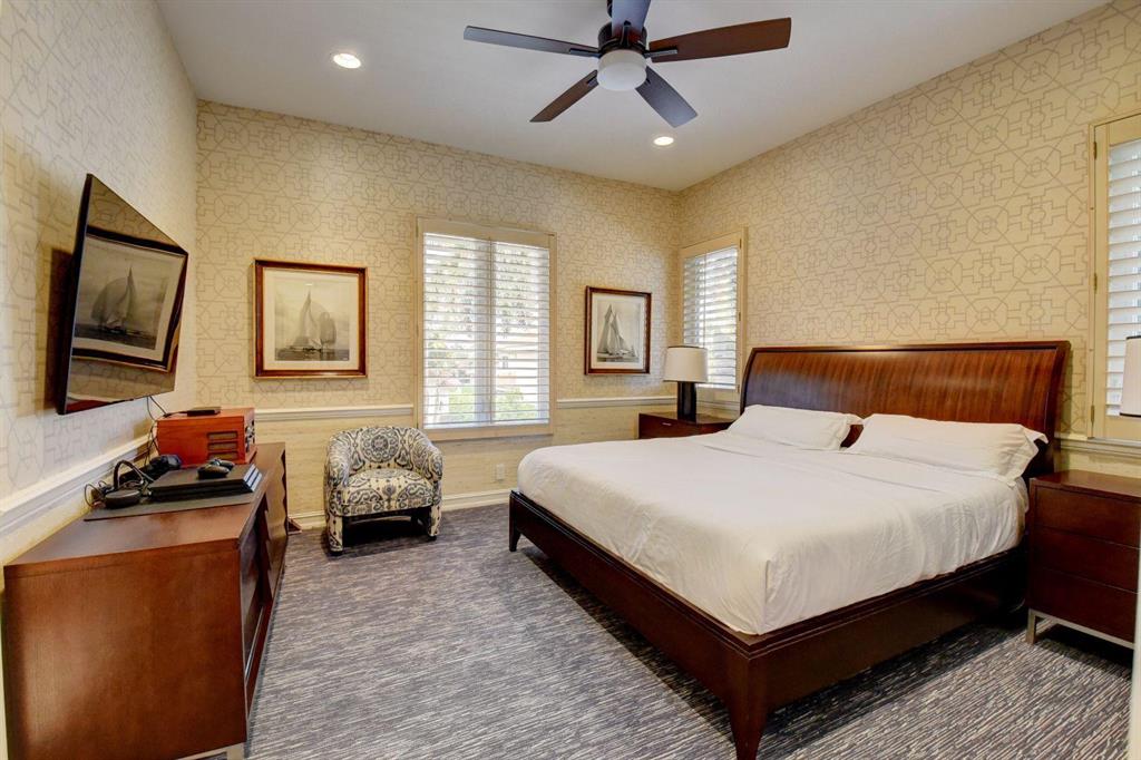 3761 Coventry Ln is an immaculate 5 BD/4 BA/2 HB+ office home with sweeping golf course views and upgrades beyond belief. Each room is pristinely decorated, incredibly high tech, and awash in natural Florida sunlight. It is perfect for anyone who wishes for a move-in ready home. The living room is perfect for entertaining. The marble gas fireplace is ideally placed in front of the large windows showcasing the pool and view of the 3rd hole. The recently remodeled Onyx-countertop and Mikaza wood bar is equipped with a sub-zero refrigerator, sink, ice maker, and plenty of storage. Each of the main rooms is also furnished with a speaker system.The office doors are adorned with leaded antique glass, and the office itself with plantation shutters and gorgeous dark-built ins.