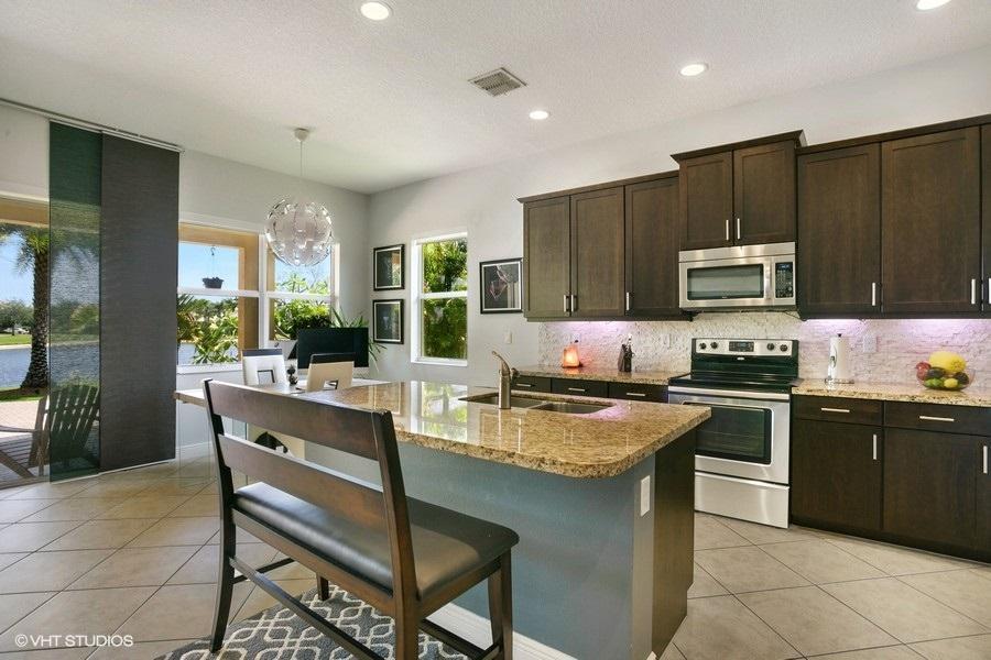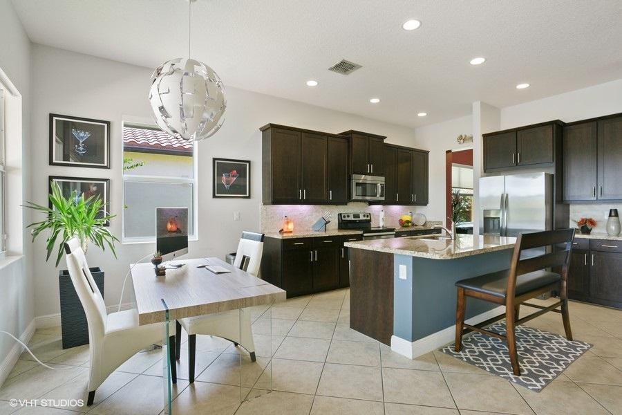 COME TO PORTOSOL AND SEE THIS BEAUTIFUL 3 BED RM 2 BATH HOME. ENTER INTO A LARGE FAMILY AREA WITH AN OPEN FLOOR PLAN AND FORMAL DINING AREA, THE COOK WILL ENJOY THIS SPACIOUS KITCHEN WITH WOOD CABINETRY ,GRANITE COUNTERTOPS, ISLAND, BREAKFAST AREA,STAINLESS STEEL APPLIANCES,AND HIGH CEILINGS WITH RECESSED LIGHTING. ENJOY THE LAKE VIEWS FROM YOUR MASTER BED RM,FAMILY RM, AND KITCHEN, YOUR MASTER BED RM HAS A LARGE WALKIN SHOWER, DOUBLE SINK VANITY,AND TWO WALKIN CLOSETS. STEP OUTSIDE INTO YOUR COVERED PATIO AND START UP THE BARBECUE AND BE READY TO ENTERTAIN. THE LUSH LANDSCAPING AND LAKE VIEWS WILL LEAVE YOU BREATHLESS. THIS GATED COMMUNITY OF PORTOSOL HAS IT ALL-CLUBHOUSE, POOL,FITNESS CENTER, BILLARDS, TENNIS COURTS, BASKETBALL COURTS, AND PLAY GYM, JUST MINUTES TO TURNPIKE AND I95...