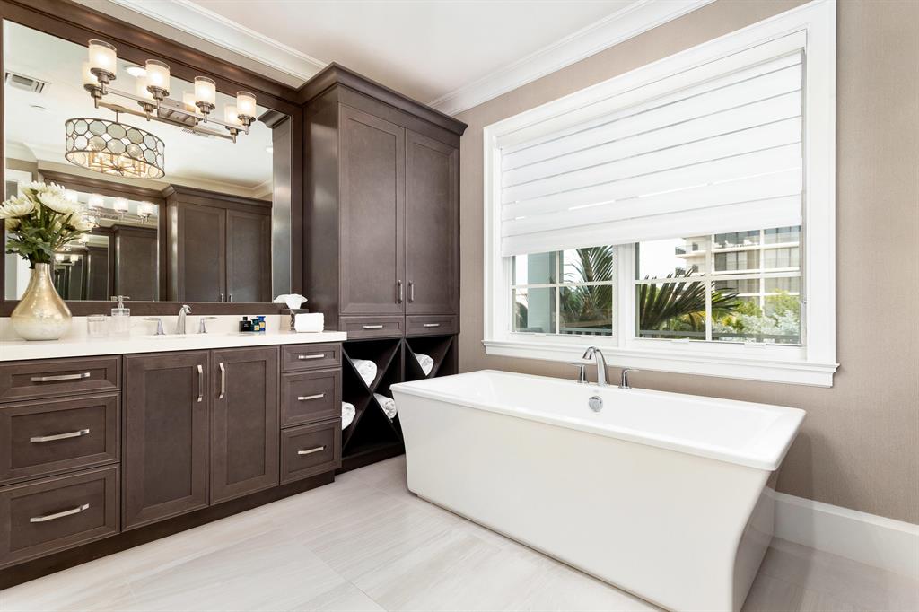 BRITISH WEST INDIES CRISP CONTEMPORARY DESIGN HALF A BLOCK TO PRIVATE, GATED AND DEEDED BEACH ACCESS. Luxury features include upgraded designer kitchen cabinets and a spacious island, built in Thermador luxury appliances, including gas range, double wall oven, built in under-cabinet wine cooler, solid surface Caesarstone countertops, stylish mudset porcelain tile, beautiful wood floors, 10' ceilings, elevator, frameless heavy glass shower enclosure and freestanding soaker tub in master bath. Exterior features include a private balcony, spacious private patio with summer kitchen and built in BBQ, custom made mahogany front door, impact glass windows, tropical landscaping, and a private heated pool. Large closets, Touch Screen Smart home. Remainder of 10 year home warranty is transferable.