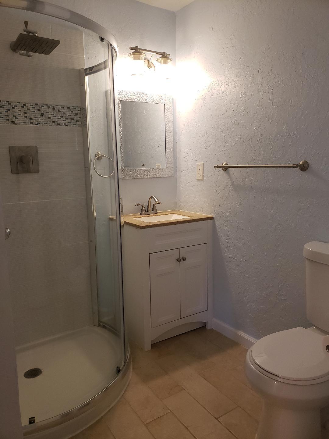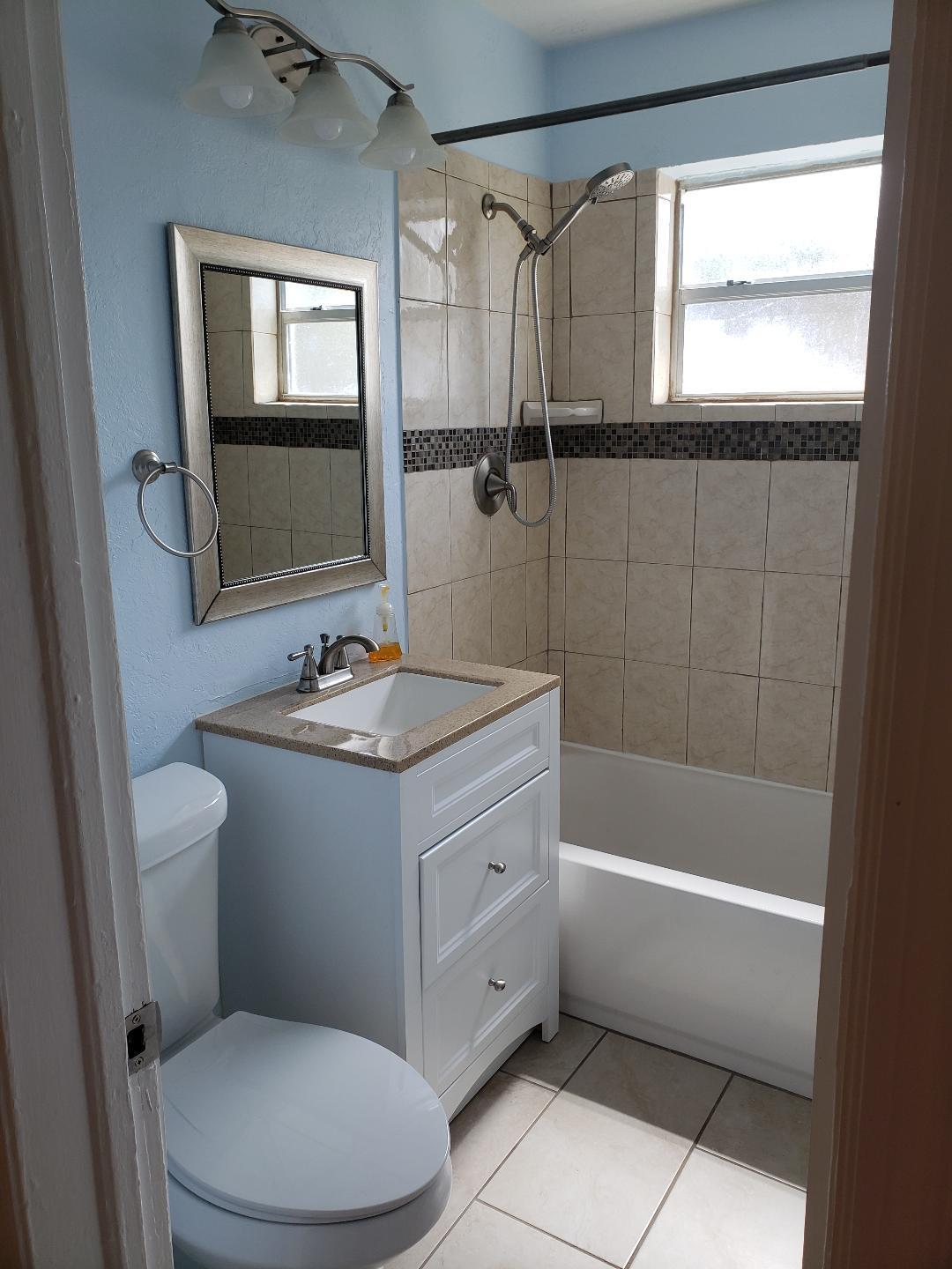 Move in ready. Updated 3/3 CBS Home on a beautifully quiet dead-end street 3 newly remodeled bathrooms and a brand new kitchen including stainless steel appliances together with a transferable warranty, white shake style cabinets and quartz counters, This home is ready to move in. New tile floors and trim flow throughout the house with much desired wood grain ceramic tile in all bedrooms. Freshly painted inside and out, hurricane shutters and a newer A/C are great features. This sits on a large totally fenced lot with a storage shed complete with electric. Clean landscaping, plenty of room to entertain or add swimming pool. 3rd bedroom and bath could be mother-in-law suite. Covered porch front and rear.