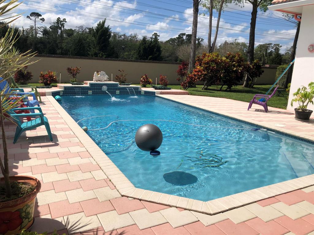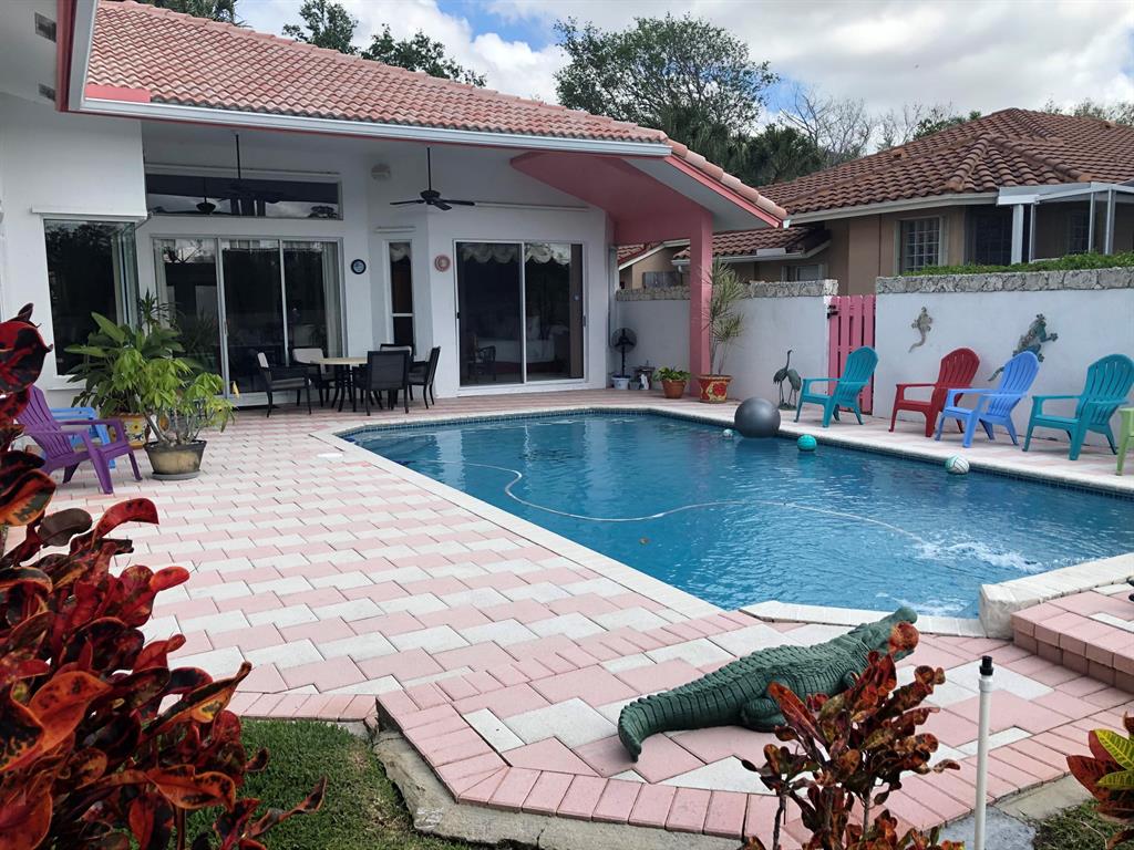 Amazing home located in the quaint neighborhood of Turtle Run. As you enter the custom design front door you will see the recently refinished salt water pool with a water fountain to die for. This home has 2,482 sq ft of living space with 4/2. Currently one bedroom is used as an office with a western theme. Open floor plan with spacious living area with eat in kitchen and separate formal dining room. Setting area and bar w double glass doors leading to the pool. Great for entertaining . Tile roof. 2 car garage and paver driveway. Short distance to major shopping and restaurants, Put this home on ''your must see list''as you do not want this one to get away.