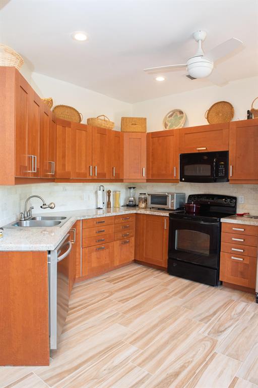 Beautiful light and bright home featuring 3 bedrooms/2 baths/2 car garage and pool!! This home located on a large and private corner lot. NEW ROOF going on. Open concept floor plan with freshly painted walls and many updates. Newer kitchen with new cabinets, granite, backsplash, and more modern appliances. The kitchen opens to the great room which features a living and dining room area. The great room with brand new wood tile floors features 3 sliders that open to a fully fenced backyard that features a recently resurfaced private pool. The master bedroom and second bedroom look out onto the pool and the yard. This master bedroom is large, with newer laminate flooring and fan. The master bathroom also is very spacious featuring a large walk-in closet/changing area: two sinks, roman tub,