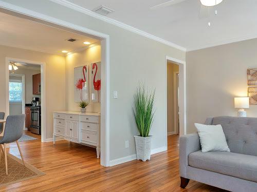 Wow! Where do I begin?! Adorable and Charming 2 Bed, 2 Bath Cottage w/ a detached Cottage and Utility Storage Shed All situated on a beautifully landscaped maintenance free, picket fenced yard. A/C compressor in '19, Newer appliances, Shutters, Dimensional Shingle Roof w/ 15 year life expectancy left, Under Termite Bond, Refinished Natural wood Floors, New interior doors & trim, A vinescaped arbor in the yard which is perfect for outdoor dining with friends. Brick pavers lead to and from throughout the whole property including the driveway. The guesthouse is an intimate space of 240 sq. ft w/ full bath and French Doors opening to and with Garden Views. Take a look at the pics and then come and see it and fall in Love. Welcome Home!