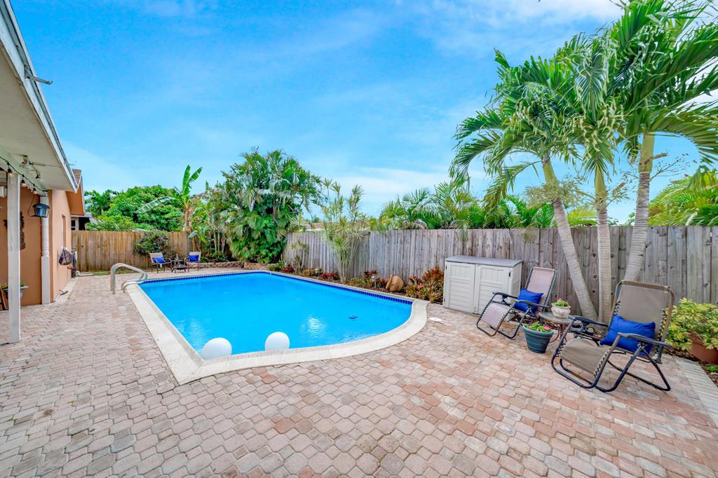 Wow! Four Spacious bedrooms, 2 baths, POOL Home in Sandalfoot Cove! Circular driveway with pavers. Newer windows! Crown molding! Tile flooring throughout living area and laminate flooring in the master bedroom! Both bathrooms are updated & the master En Suite bathroom as a Jacuzzi tub! Fenced in backyard has covered area Plus pavered patio with a huge pool! Inside laundry/utility room. Sandalfoot Cove has NO HOA fee. The fee is ZERO! Pet friendly community/all ages ok/no clubs to join. Amazing schools!