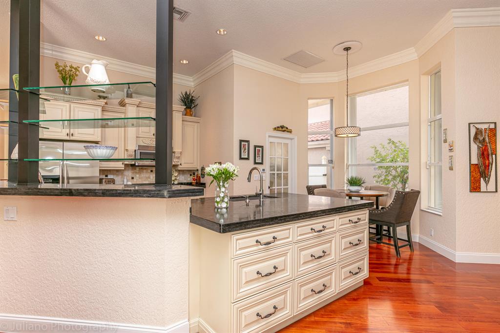 Delightful updated home in the heart of Boca Del Mar. 12 ft ceilings & a lot of windows make this home light & bright. Gorgeous cherry hard wood floors throughout most of the home. Remodeled, open kitchen with a beautiful center island, all wood cabinets & SS appliances. Both bathrooms have been tastefully updated. New hurricane shutters, freshly painted exterior & new landscaping, Roof 2006, AC 2018. Lovely screened patio overlooks beautiful large, fenced back yard. Laundry room inside & 2 car garage. This small quaint neighborhood has an enjoyable community area that includes a clubhouse, pool, tennis court & basketball court. A short stroll to Howard's Market, gym & all the new restaurants in the area. 15 mins to the beach! Fantastic schools! Low HOA! Great home in a perfect location!