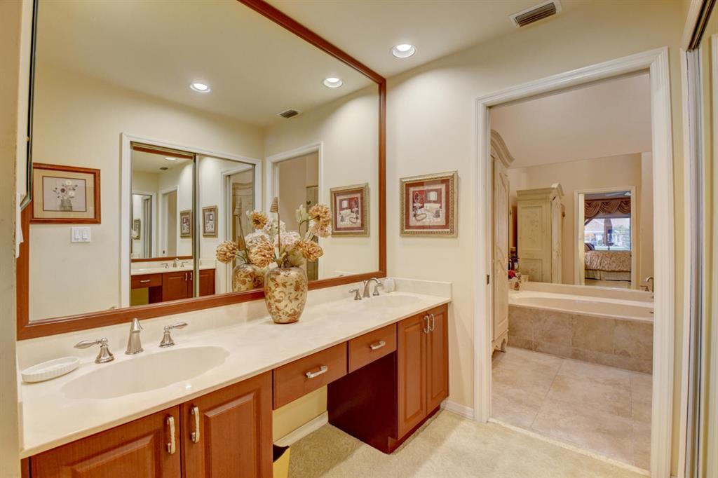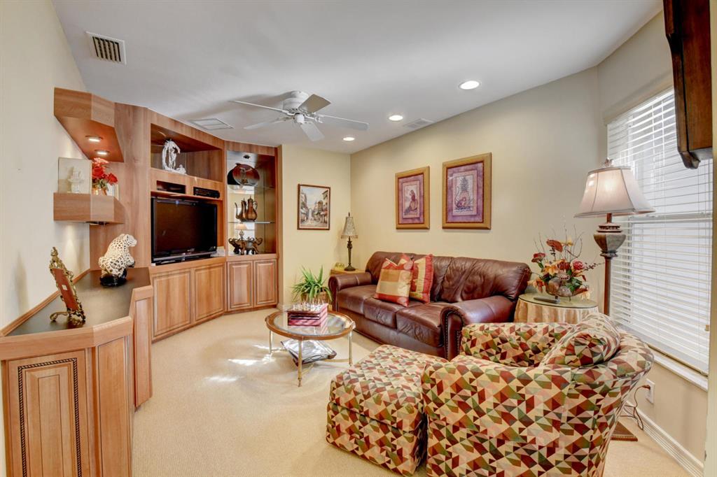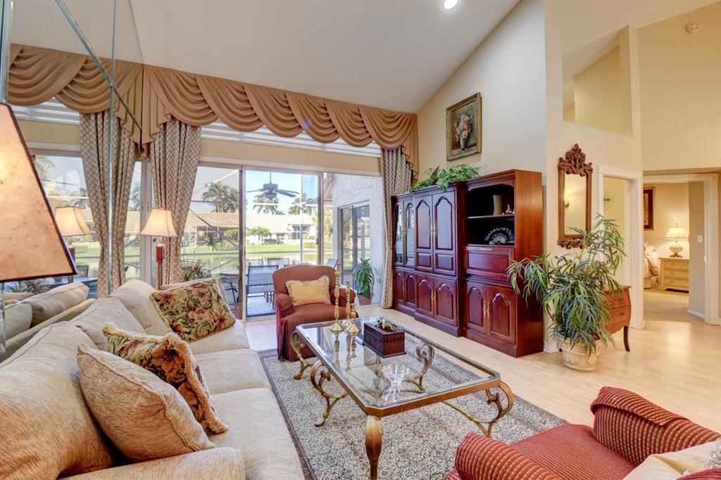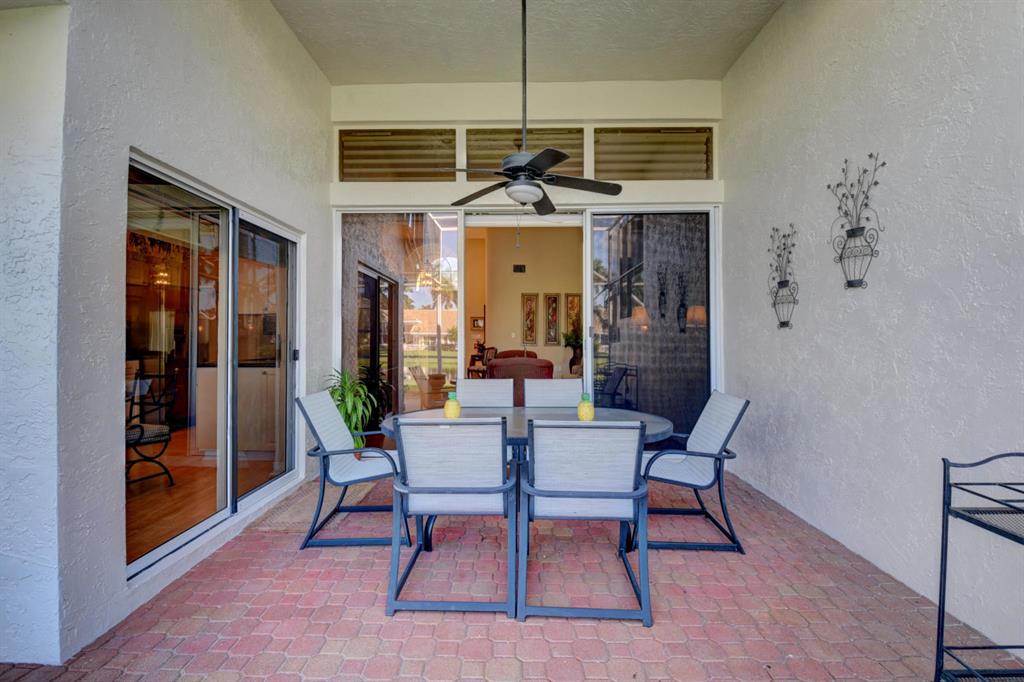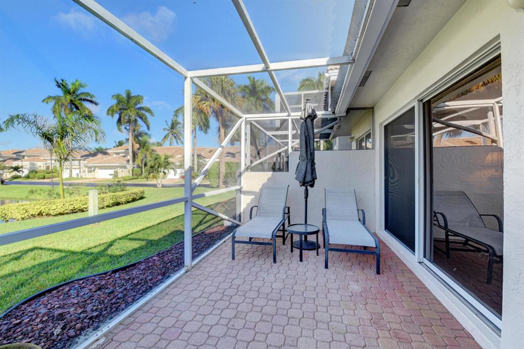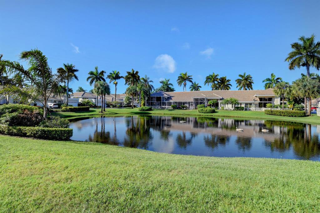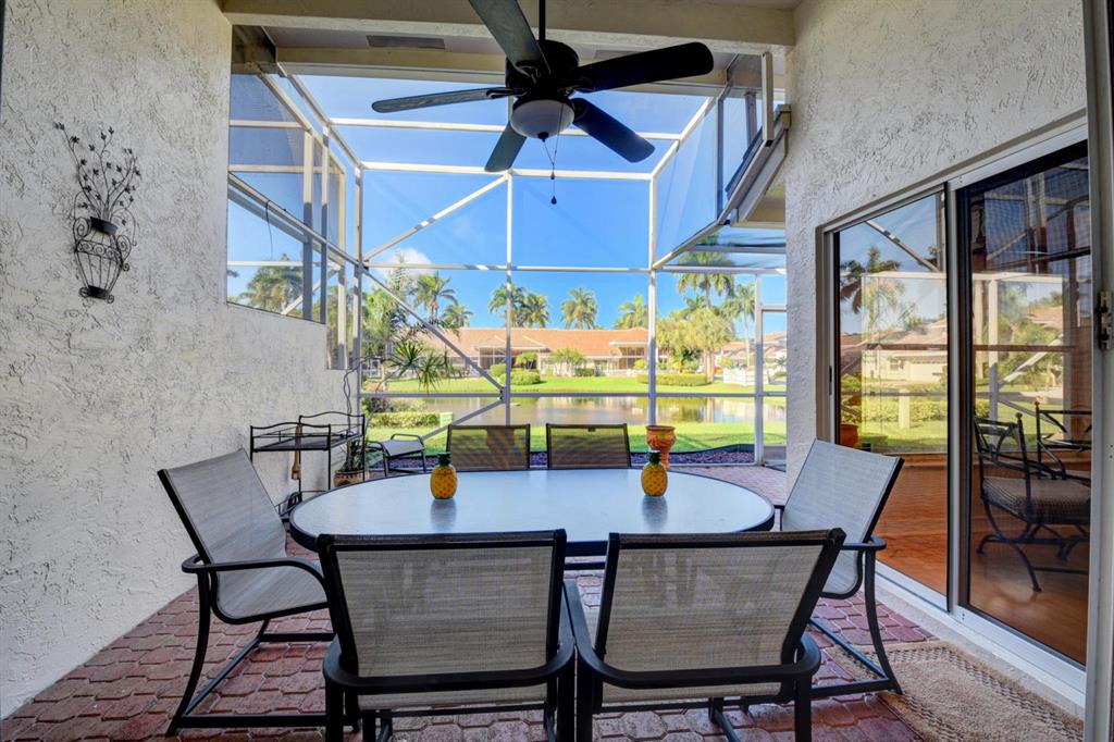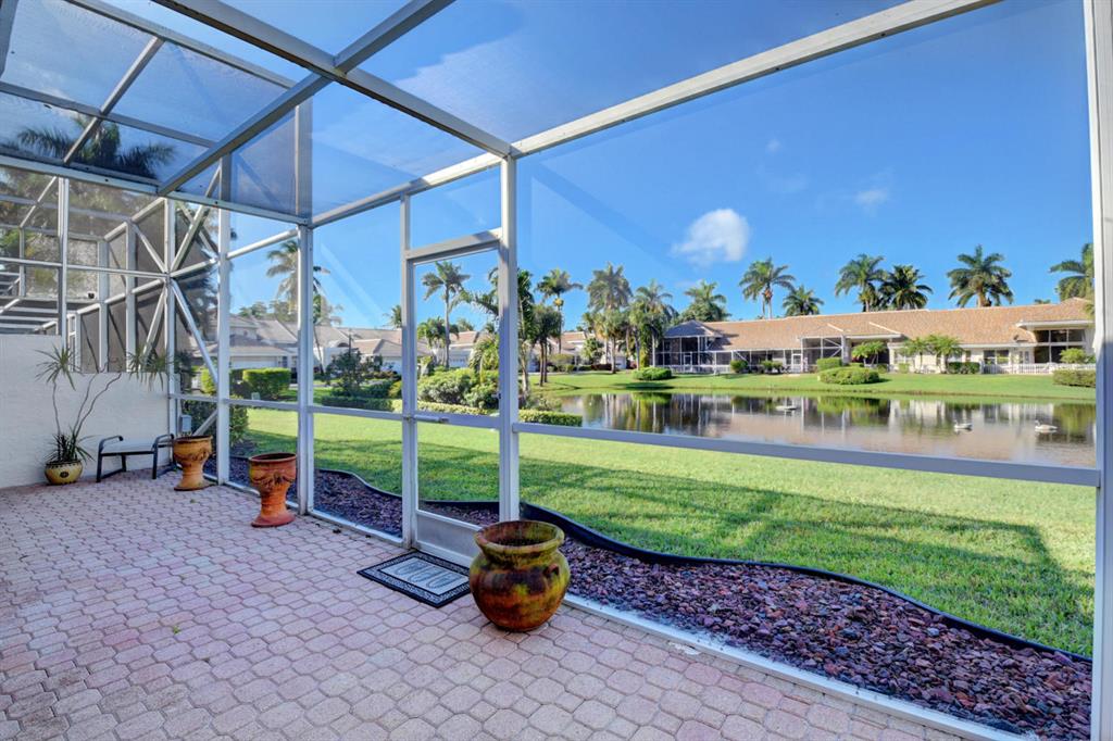 Pride of ownership in this stunning lakefront Villa. Upgrades galore, with plenty of storage and an oversized two car garage. Top of the line appliances in the eat in kitchen. Large master suite with Walk in closet, dual master bath sinks, all glass enclosed stall shower and soaking tub. Great water views from the master bedroom. Spacious second bedroom with redone bath. Third bedroom converted to den/office. Wonderful split floor plan. Full size laundry space. New hurricane garage door 2019. Screened patio with plenty of entertaining space. BBQ area. New hot water heater, AC replaced. New Roof.