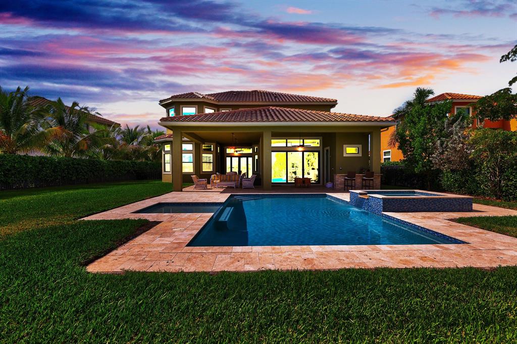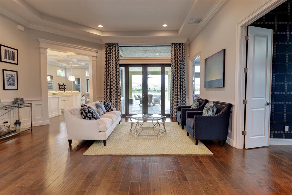 Endless long lake views from this breathtaking 5-bedroom, 4 car garage / 5298 sq.ft. waterfront estate home with governor's driveway in the prestigious community of Parkland Golf & Country Club. This ''New England'' style architechtural masterpiece is highly appointed with structural upgrades and designer appointments throughout. Features include Wood flooring, custom millwork, coffered ceilings and Chef's Dream Kitchen boasting double island, upgraded cabinetry, Caesarstone quartz countertops, Carrara marble backsplash, Thermador built-in refrigerator, Jenn Air microwave/double oven/cooktop and Miele dishwasher.