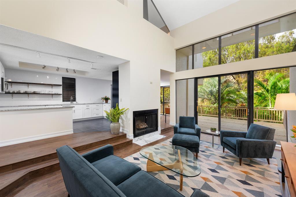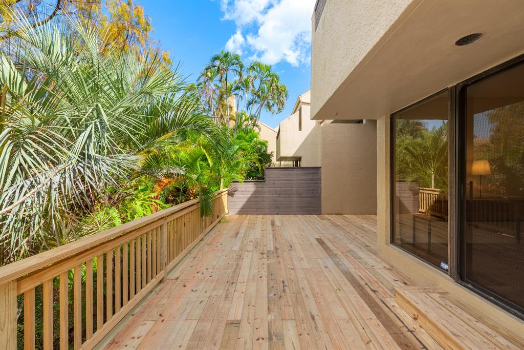 Updated and remodeled bright and airy two-story move-in ready townhome with open floorplan. Located in meticulously cared-for neighborhood. Huge vaulted ceilings everywhere. End unit with extra windows. Large and private brand-new oversized deck patio overlooks tropical lagoon. Working fireplace! 3 large upstairs bedrooms with vaulted ceilings and spacious closets. 2.5 baths. The remodeled kitchen features stainless steel appliances with quartzite countertops, custom wood cabinetry, and new floors. Sliding glass doors surround the breakfast room, ready for indoor-out living. Master with large tub and natural light, walk-in closet, double sinks, & private balcony with water views. Large laundry room. Fresh paint throughout. East Boca Raton Hidden Treasure! (See Supplement Remarks)