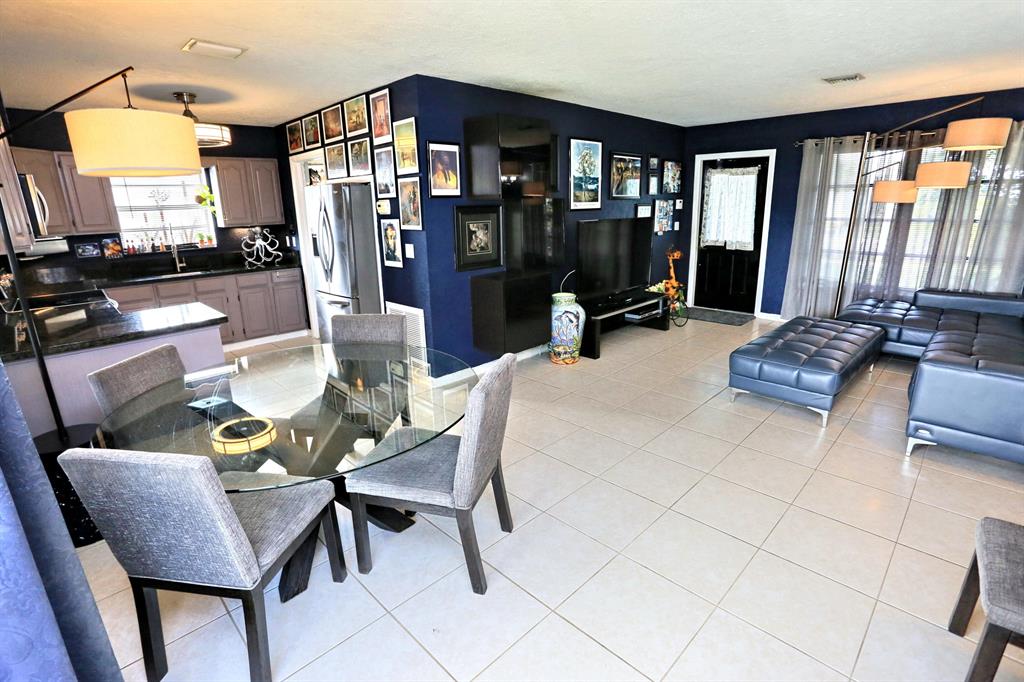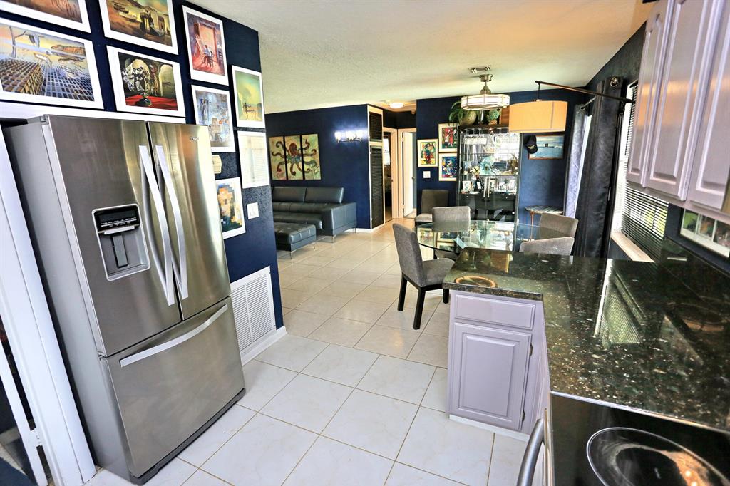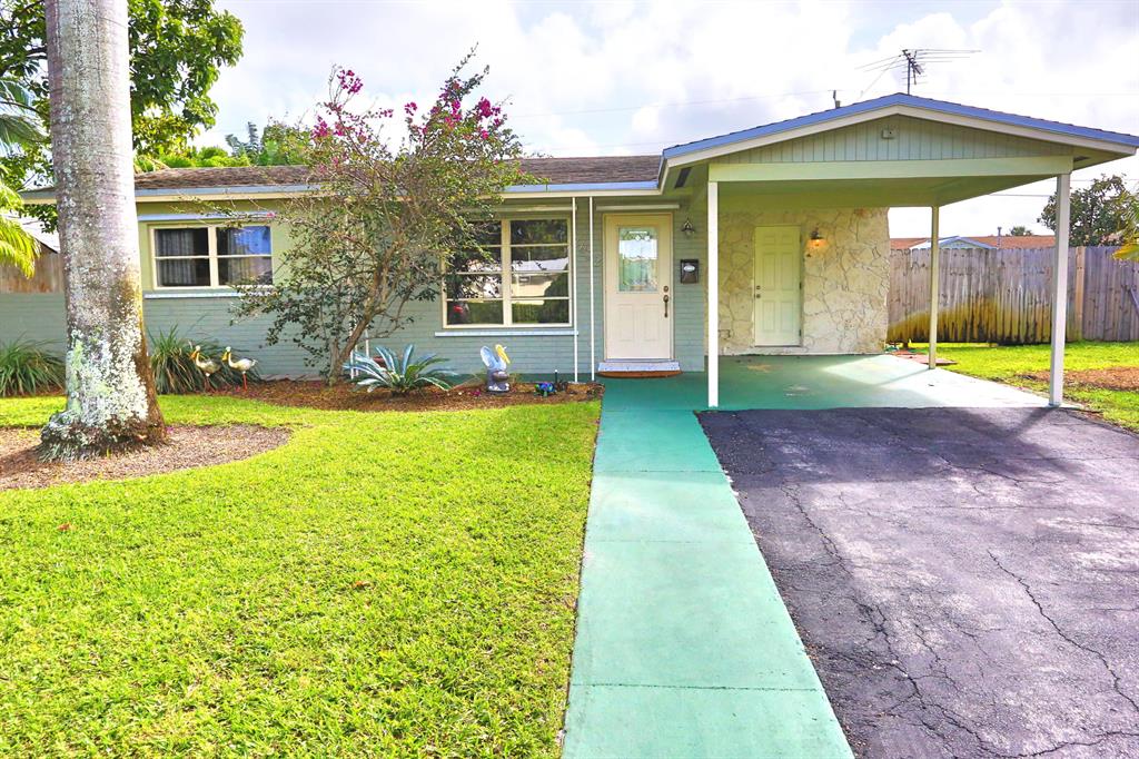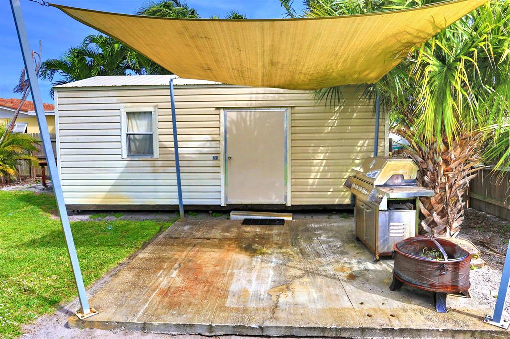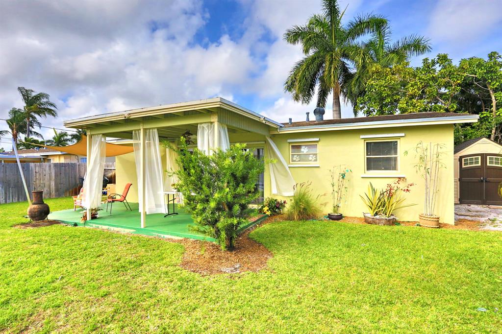 An elegant lifestyle awaits at this cozy South Florida retreat. This two bedroom, single bath residence features tiled floors throughout with Terrazzo accents in both Main and Guest bedrooms. Open kitchen with granite counters and upgraded stainless steel appliances allow plenty of room to simultaneously cook while entertaining your guests. (Gas line available!) Behind a set of sliding glass doors, you are welcomed into the large fenced back yard with extended patio. A double door fence leading into the back allows plenty of room for trailers, boats, and other craft vehicles. Permitted work shed with electricity for those who seek a work garage as well as an additional storage shed. Perfectly located near shopping and major routes. No HOA here - Schedule a tour today and come see us!