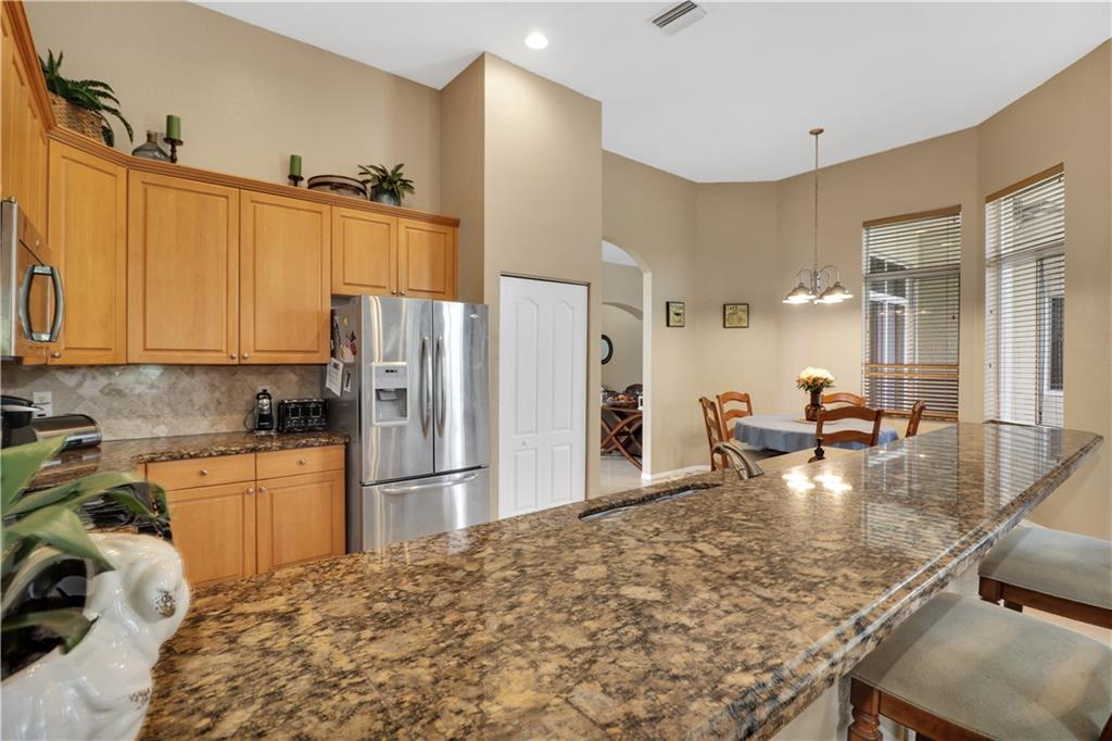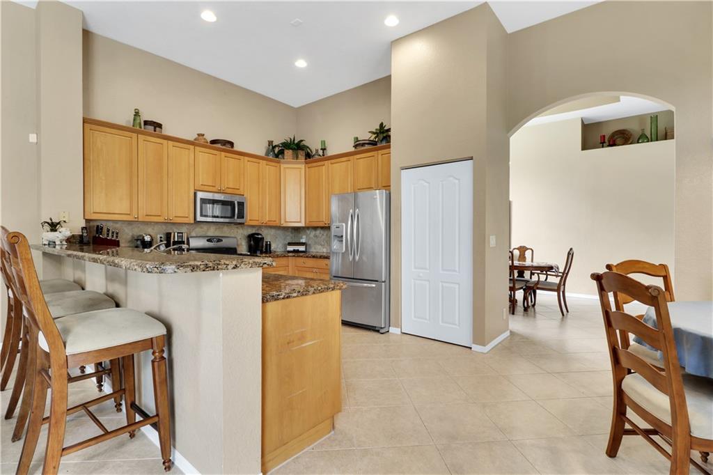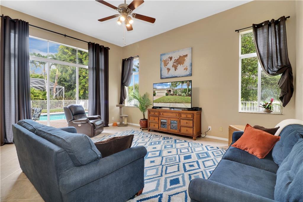 One Story La Jolla model w heated pool & spa on private fenced lot backing to SW Ranches. Ranch style layout perfect for families & entertaining. Foyer entry w volume ceilings, big living areas, formal living & dining. Eat-in kitchen w all new appliances, refrigerator, convection oven/gas cooktop, microwave, water heater, 42" wood cabs, granite counters, generous family room overlooks pool & covered patio. Split bedroom layout, master bedroom suite w updated spacious bath & walk-in closets opens to pool. Secondary bedrooms all good sized. Laguna Isles is a gated community w 24-hr security, clubhouse, tennis courts, exercise area & more. Top rated schools w/children’s bus stop just outside your front door for added convenience. Special financing incentives available through Sirva Mortgage.