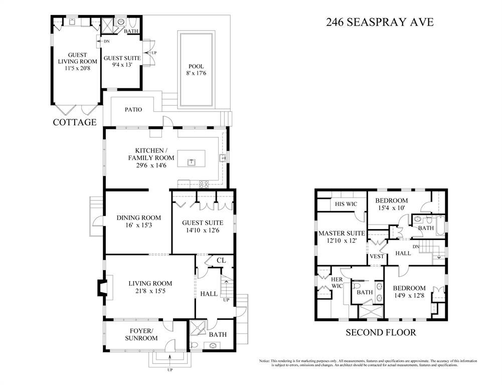 Stunning 4BR/3BA In-Town home with detached 1BR/1BA guest house, beautifully redesigned by Fairfax & Sammons. Features include bonus room, living room with fireplace, formal dining room, gourmet eat-in kitchen, and gorgeous hardwood flooring throughout. Nicely landscaped backyard with pool. Located in desirable Sea Street location.