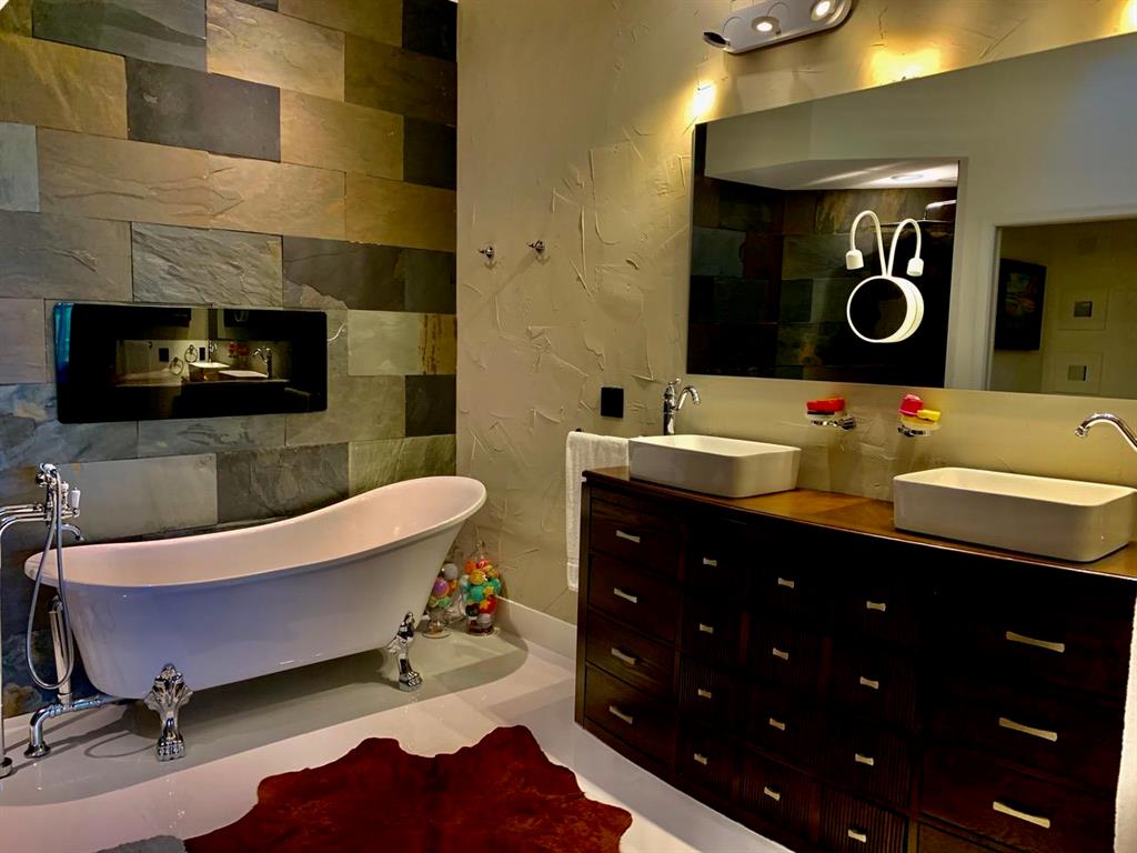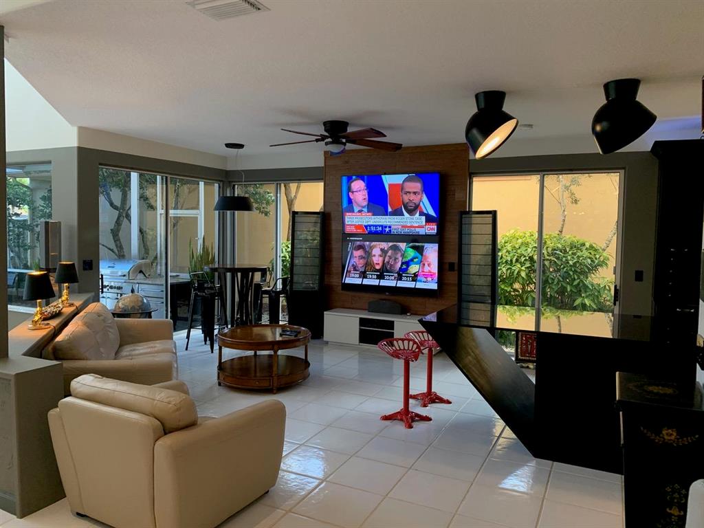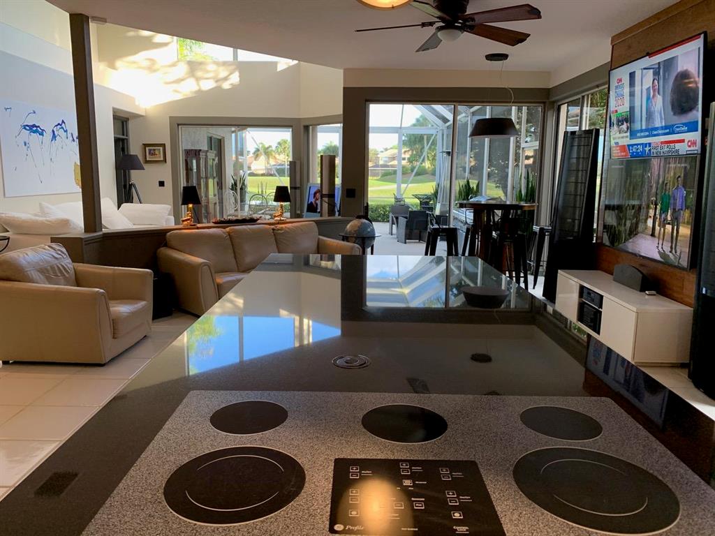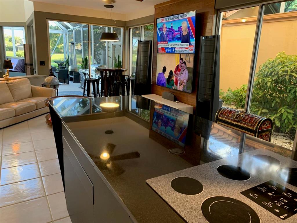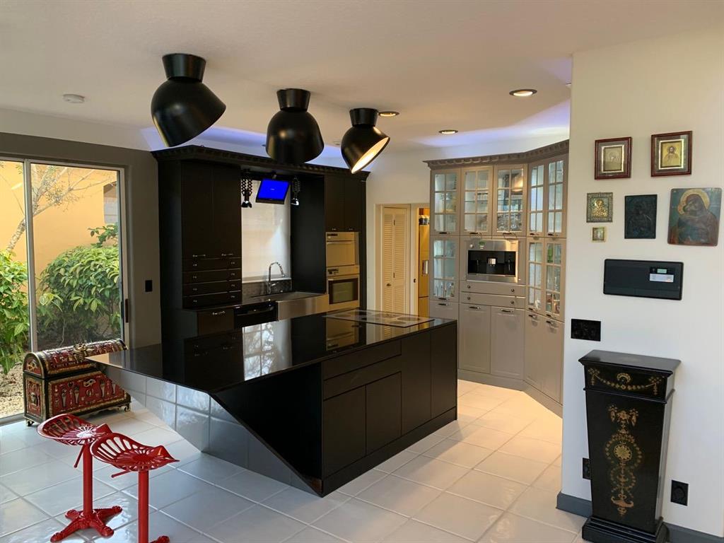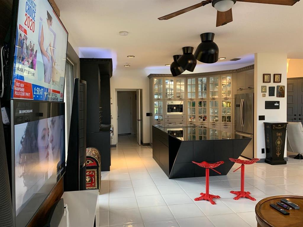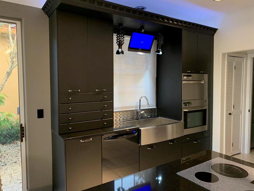 Amazing renovation by European Architect. Modern kitchen with incredible kitchen cabinets & appliances. All soft close, deep cabinets for lots of storage, glass doors to show off your beautiful glassware & dishes. Most appliances are Miele & include a steamer, convection oven & coffee maker. 5 burner glass top range & Hisense French door refrigerator. Large stainless farm style sink, fun theater/camera type lighting & sliders to the side yard. The family room includes sliders & decorative wood wall with TV's. The living room includes sliders to patio. Continuing on the first floor there is a bedroom being used as a Den with mirrored closet doors & wood floors. Around the corner is a full bath. Inside laundry room gives access to the 2 car garage with laminate flooring. See more....