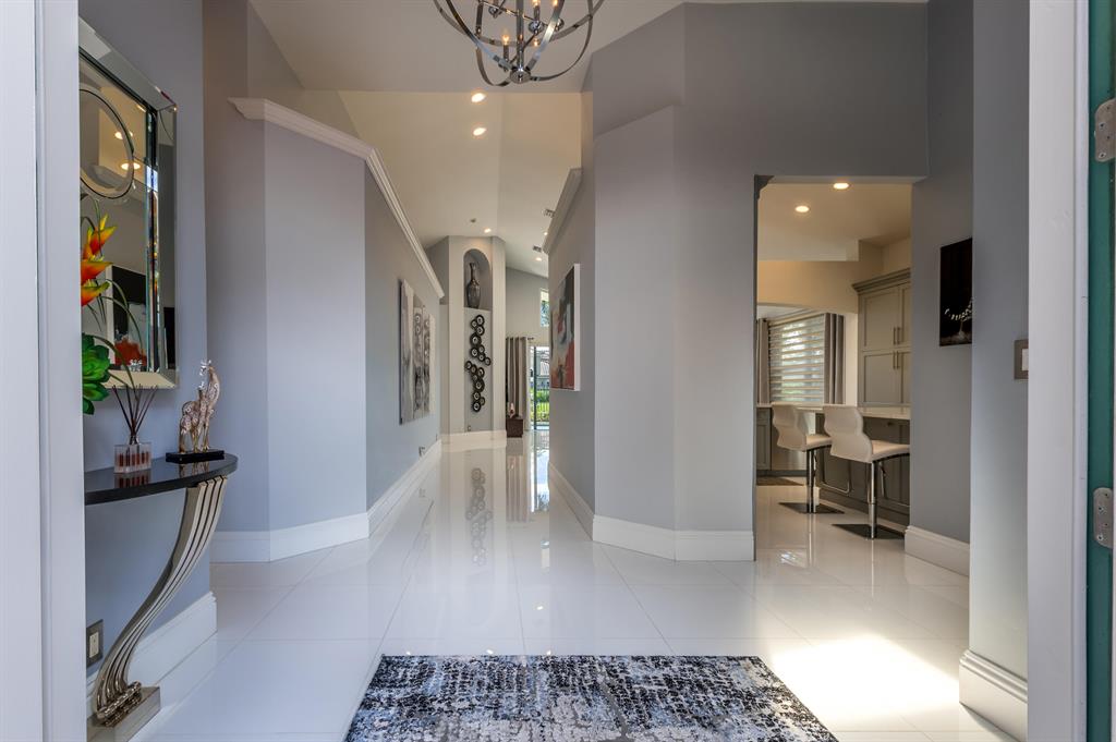 BEAUTIFUL AND SOUGHT AFTER FABULOUS SANTA BARBARA. The minute you walk in this home you will be awhed. This home boasts of fresh natural light, volume ceilings and upgraded with such a tastful, modern and european flair. Shinny white rectified porclean tile in the living areas and engineered wood in the bedrooms. A beautiful custom design kitchen with Bosch appliances, that opens to the living space viewing the sun lite pool and water views with fountain. Hunter Douglas shades, BRAND NEW AC, newer water heater from 2014, roof 2012 and IMPACT GLASS INCLUDING FRONT DESIGNER DOORS AND GARAGE DOOR. Enjoy the discounts on Home Owners Insurance. Clubhouse, tennis & fitness center in gated community. Beautiful pool & spa overlooking tranquil lake. The home is