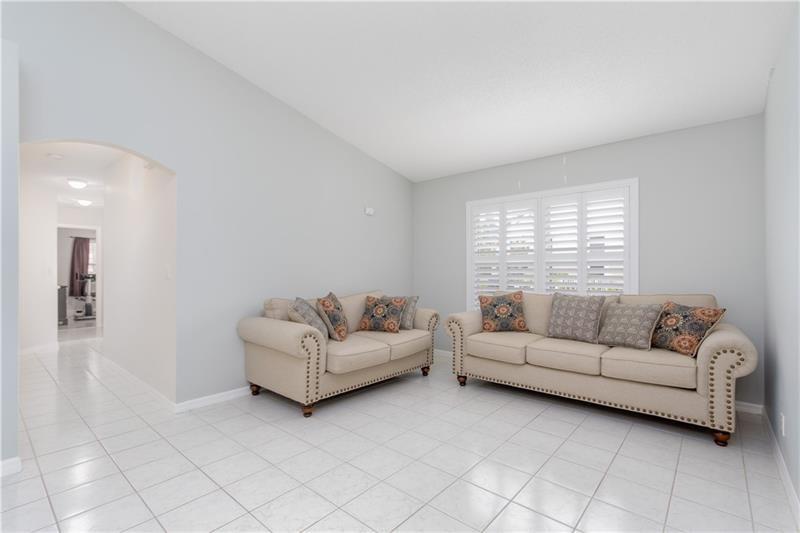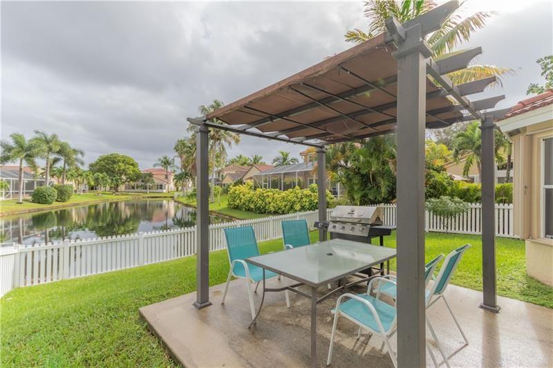 Beautiful lakefront 3 bedrooms 2 baths plus den 2 cars garage, single-story home has soaring ceilings and a wonderful open floor plan located in a highly desirable area of North Springs A+ Schools District, white/off tile throughout, fenced yard, accordion hurricane shutters, plantation shutters, walk to Community pool The gated community has low HOA fees