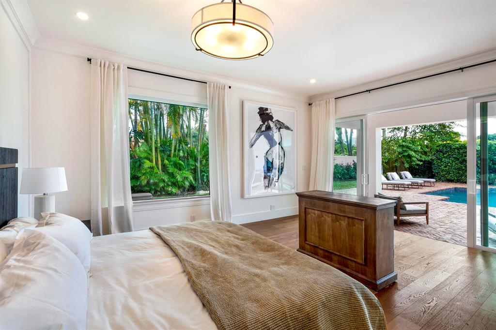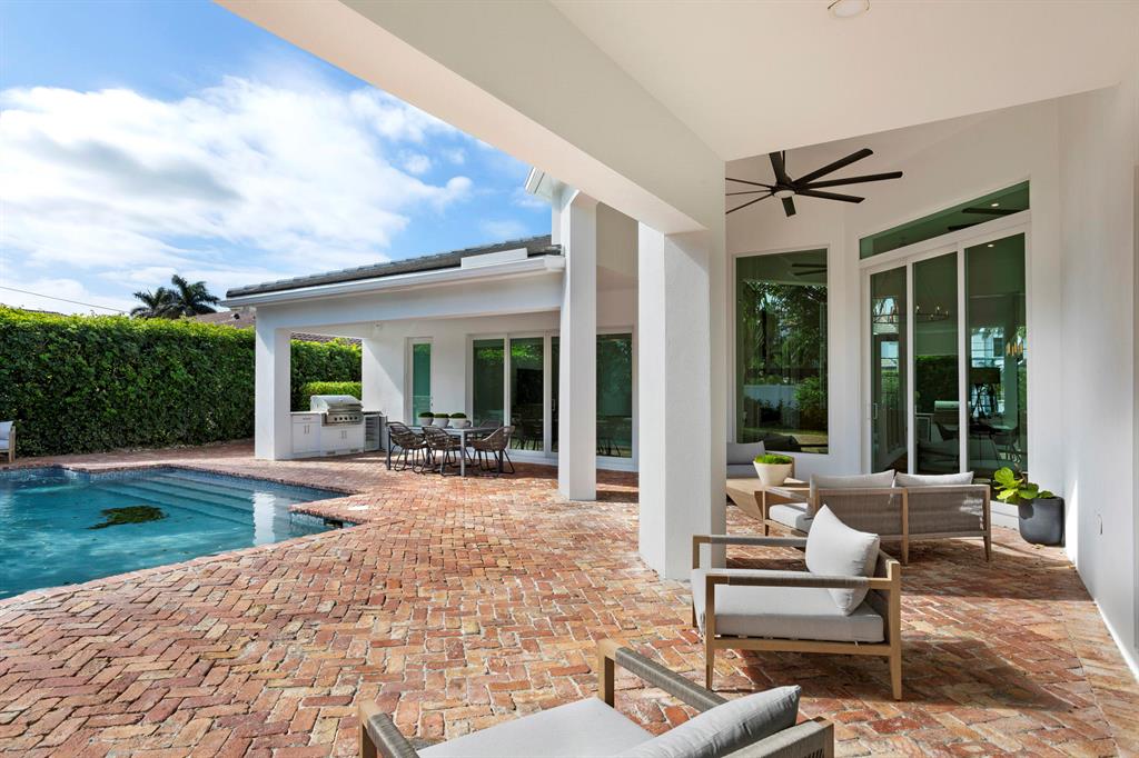 Reimagined Urban Chic-designed estate on prestigious Spanish River Road with a modern flair influenced by RH. Open loft-like spaces feature high ceilings, bleached oak floors and glass capture an infusing of natural light throughout. Expansive wraparound lanai with summer kitchen facing the private resort pool. Enjoy a short distance to the Boca beach. Shown by appt only.