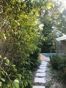 Location! Location! Quaint home with European flair on ample private lot, backing up to Cypress Knee Preserve. Close to Town Center mall, shops and restaurants. Wonderful neighborhood. Voluntary HOA, no need for application or interview. Brand New AC system; washer and dryer; newer appliances in kitchen including Bosch DW, Range, extra Kitchen Aid wall oven, newer counter depth refrigerator; new quality laminate floors in east hallway and bedrooms 1 and 2, Impact windows. Living room dinning room area has beautiful natural stone floors. Florida room opens to pool patio and to backyard.Great flow for entertaining and enjoying the privacy of a lush backyard with spectacular huge trees. Large 2 car garage with storage space and laundry opens to a great paved driveway for 4 cars.