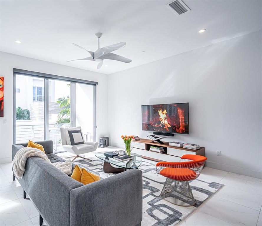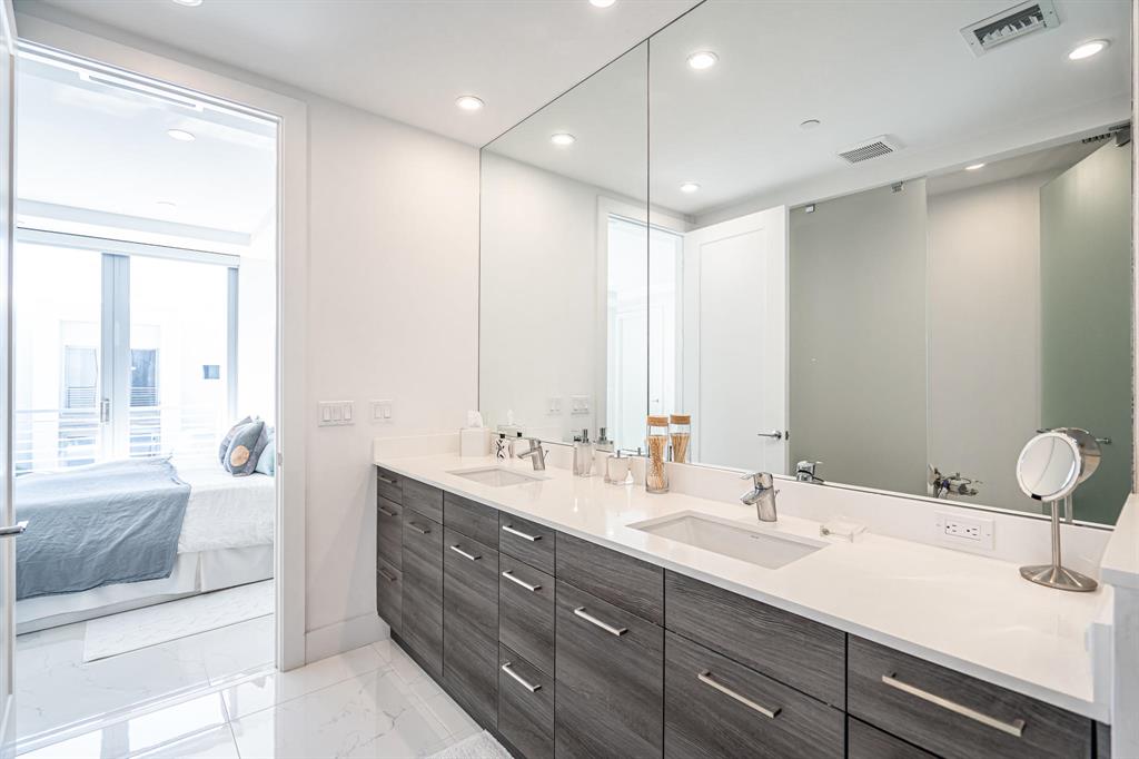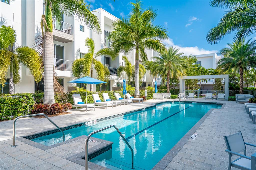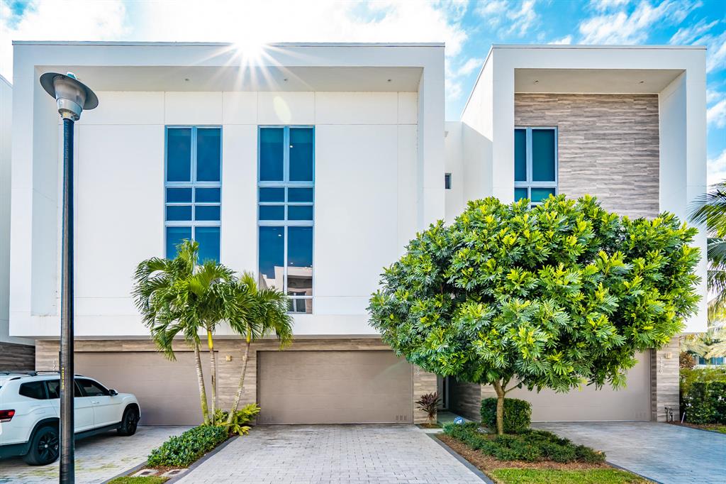 In the heart of Boca Raton, this gated luxury Moderne Boca Townhome is only a few minutes from the Beach, Mizner Park, Town Center Mall and A-Rated Schools. This fabulous 3 story home features stunning contemporary architecture, a gourmet kitchen with custom glass backsplash, waterfall quartz counter tops, wine refrigerator, glass front streamlined refrigerator, Jenn-Air appliances , impact glass and your own private elevator. The open floor plan offers 10-foot ceilings and 9-foot sliders with 24''x24'' tiles throughout. This unit is rare boasting a 4th bedroom with plenty of room for entertaining inside and a beautifully landscaped patio on the ground level for your enjoyment. Includes a 2 car garage. The community has a fitness center and luxurious pool with intimate lounging areas.