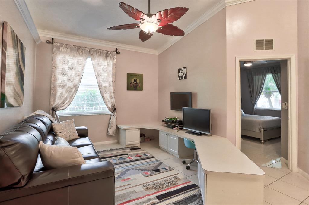 Enjoy the grand entrance into this must see Turn-Key home. 3rd bedroom was converted into a Den. Well Maintained and custom design with Crown Molding throughout with open floor plan that will leave you breathless. Upgrades include newer appliances, newer AC with a 10 year warranty including parts, Marble flooring in the huge Master Bedroom, built-out closets, and TONS of storage! You and your guest will be overjoyed by this desirable community with the tremendous amount of activities that is included in the Low HOA such as a spacious heated pool, kids pool, magnificent clubhouse, tennis courts, playground, 24-hour Manned gate, security guardLawn Care, Fitness Center, Roof Maintenance, Sauna, Spa Hot-tub, basketball, biking - jogging, cable and picnic area. Only 15 minutes to down.