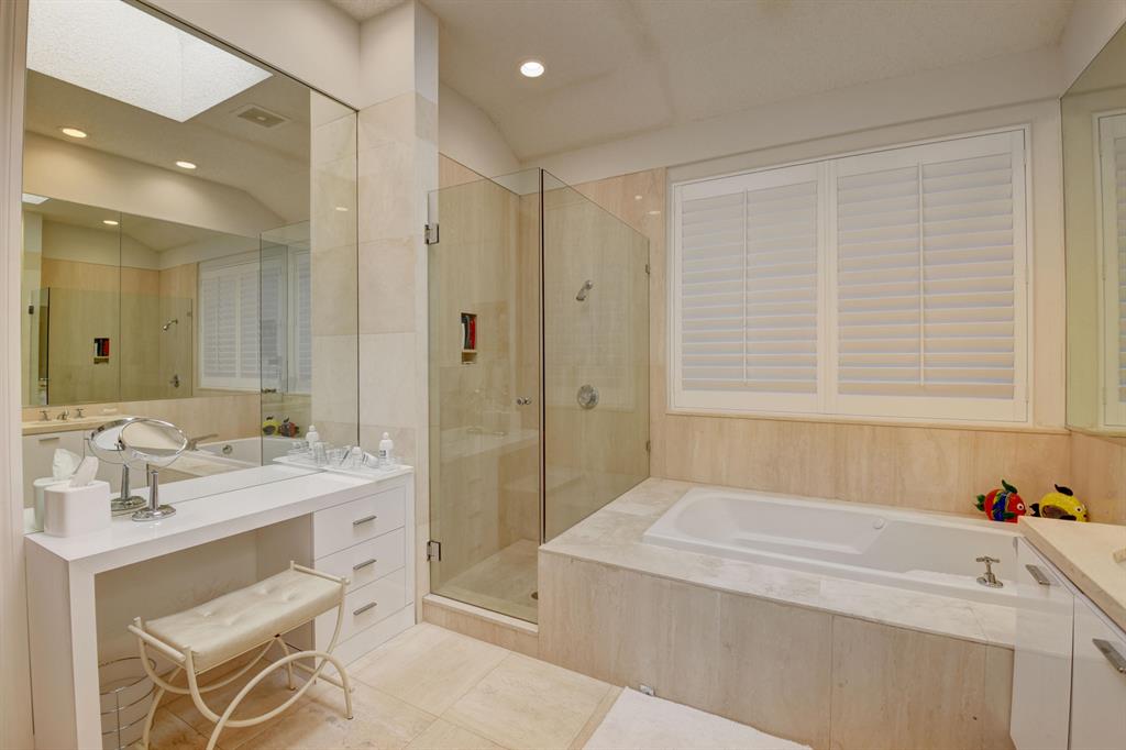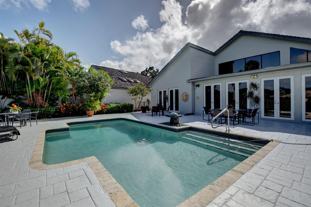 Wedgewood 4 bedroom, 5.5 bath free standing patio home on the golf course in a private gated community. Open spacious floor plan with 24'' marble tile floors in living areas. Custom wet bar with extra cabinets. Expanded living area with 30' x 13' porch area glassed in and opened to the living room with wood floors. Updated kitchen with granite counters. Custom built-ins. Each room has its own private bath. Open pool/patio area with covered bar/entertainment area with gas grill,sink and refrigerator. Very light and bright home with lots of skylights. All basic furnishings available. In move in condition. Club membership required.