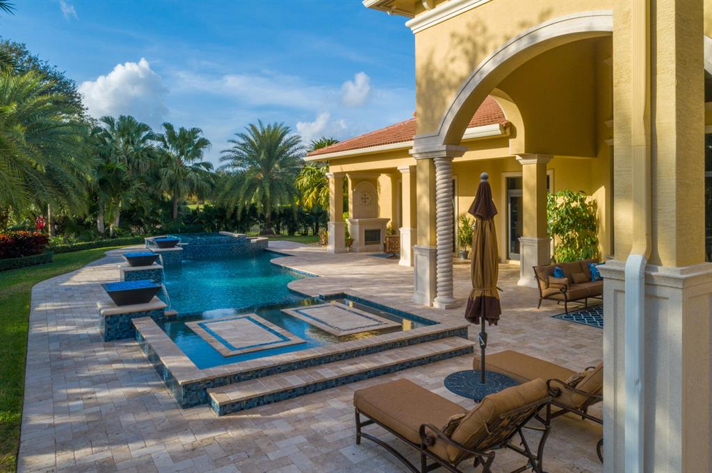Sophistication and elegance describes this exceptional estate situated in Parkland Golf and CC, with vast, scenic golf and lake views, This one of a kind custom masterpiece boasts 10,422 of total square feet, with 6 Bedrooms, 7 full baths, huge gourmet kitchen, club room, private office with fireplace, separate billiards and card room, theater room and sauna plus a 4 car-side entry garage and 3 fireplaces. Enjoy the spacious 1st floor master suite with fireplace plus sitting room, with abundance of natural sunlight. Exceptional outdoors, with lush landscaping, award winning resort style pool with fire pits, summer kitchen, outdoor fireplace and complete privacy, perfect for entertaining