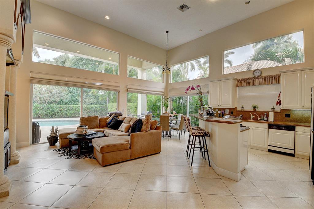 Located on an oversized private lot, this elegant one-story home of 3 bedrooms & 3 baths is light & spacious featuring volume ceilings; neutral tile & carpeting; an open kitchen with bisque 42'' high-gloss cabinetry, granite countertops & a charming breakfast nook; a Living Room wet bar with granite; Family Room entertainment center; marble Master bathroom; custom drapes & solar shades; walk-in closets; extra high-hat lighting and an inviting totally private backyard with a covered lanai and an open patio with a freeform pool. Great space & value!