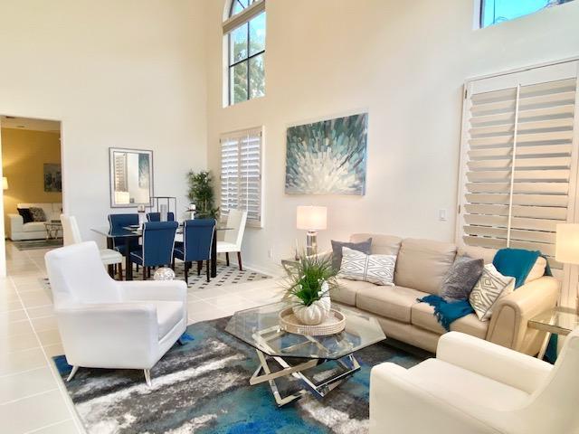 Light, bright, and airy 4 bedroom, 2.5 bath single family waterfront home with a pool and fabulous curb appeal in highly desirable Hampton Court at the Polo Club. This home is situated on a beautiful corner lot and has a great layout with lots of added bells and whistles. Brand new carpet in bedrooms, updated kitchen, newer roof (2008), plantation shutters throughout, newly diamond brited pool, new landscaping, neutral colors, and the list goes on. Fabulous open layout with a spacious master bedroom on the first floor overlooking the pool and lake and three additional bedrooms upstairs, including one extra large room that would make a fabulous media room, exercise room, or library. House has been professionally decorated by Jill Gold Home Stager.