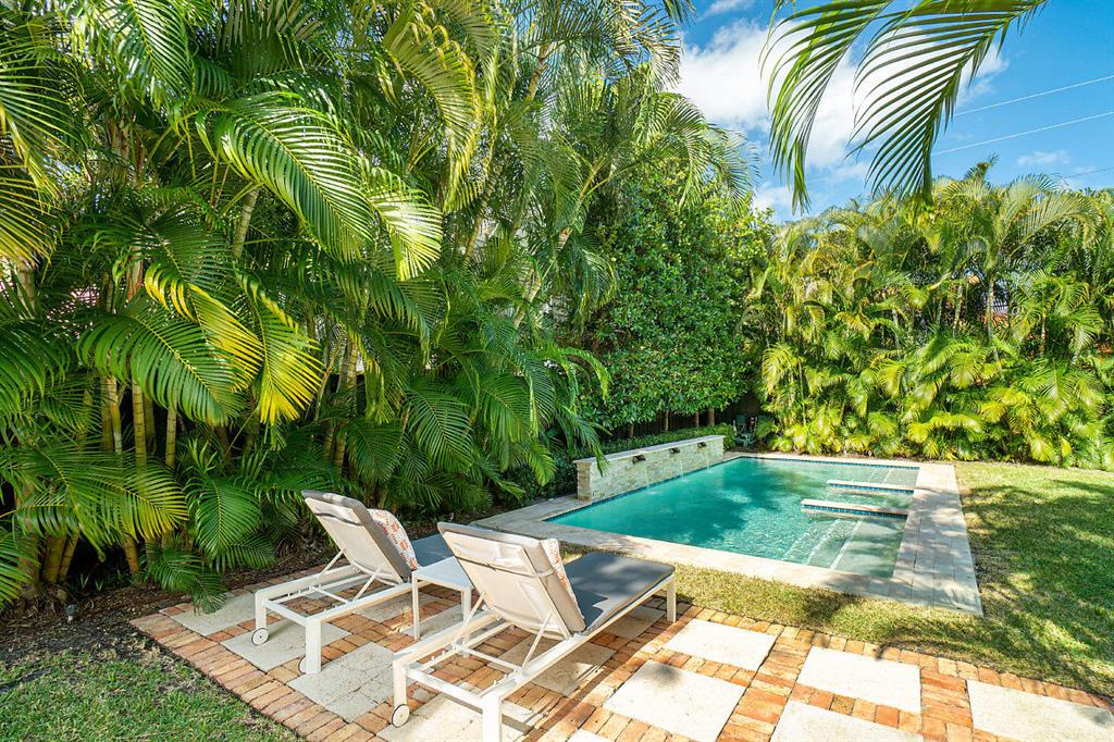 El Cid Gated Estate Situated on coveted Dyer Rd., this newly renovated, full impact, light filled, Mediterranean Estate offers 3 bedrooms and 2.5 bathrooms in the main house, with a complete one bedroom guest cottage over the pool cabana with half bath and single garage. This expansive 75 x 130 private lot features a lush tropical garden, a large heated pool with waterfalls, and a spacious outdoor area creating a resort style oasis great for entertaining and relaxing. The 2nd floor offers a master suite featuring an oversized walk-in closet and two additional generous guest suites and newly renovated baths.
