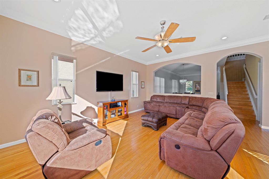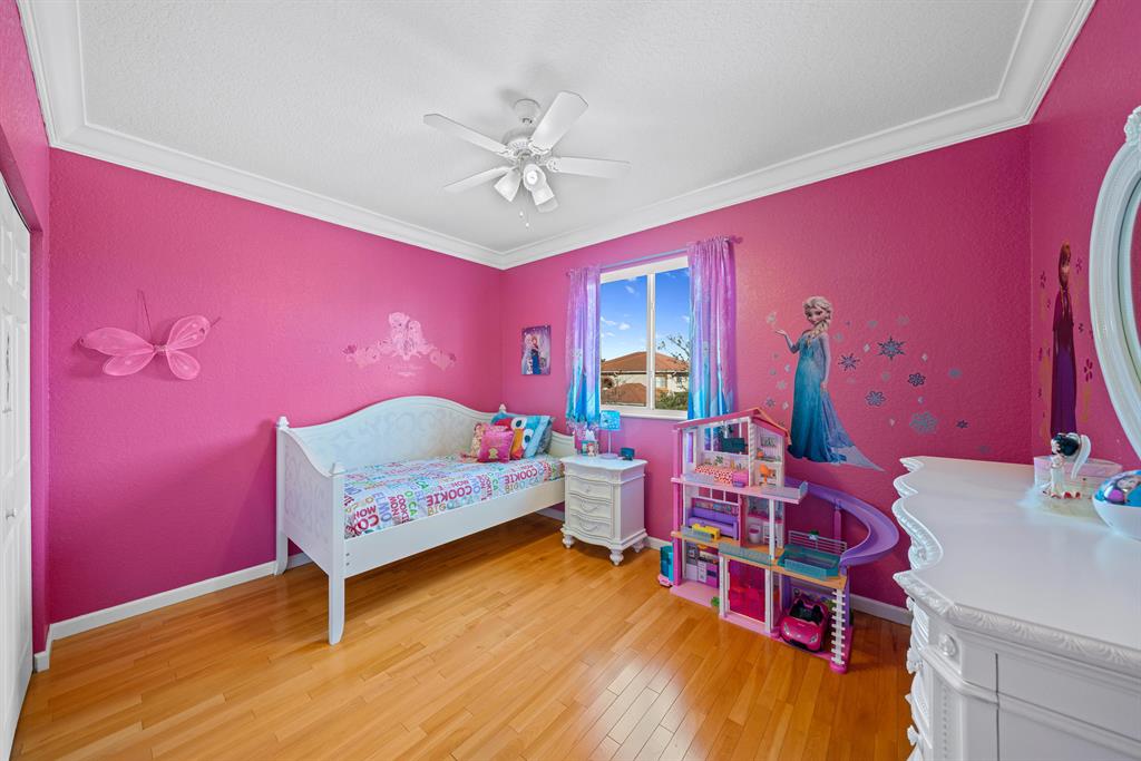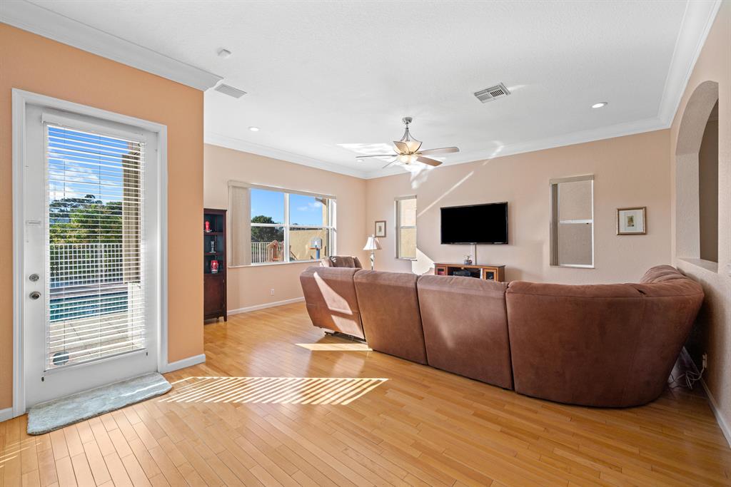 This stunning lake view home in Terracina is a must see! It has all the upgrades. Hardwood floors throughout. New kitchen with top of the line stainless steel appliances, 42'' cherry cabinets, granite counter tops, walk in pantry and touch faucet. Over-sized master suite with a pool and lake view. Private his and her master bath, Jacuzzi tub, spa shower with jets, solid wood cabinets and marble counters. All other bathrooms have solid wood cabinets and granite counters. Top of the line Hansgrohe plumbing and fixtures in all baths. Walk in closets and a loft! AC unit and pool heater less than 2 years old. Exterior painted last year. Roof is well maintained. Accordion shutters and mango trees! Nothing to do but move right in! Gated community with manned security and low HOA fees. More...