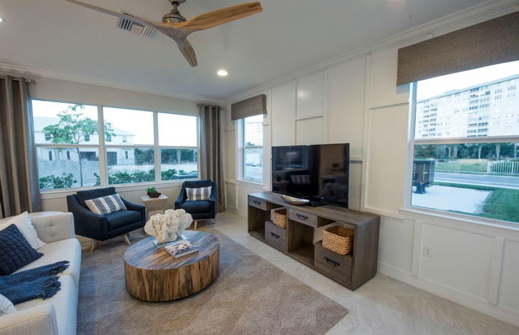 This two-story Brookstream townhome is available for an immediate move in. This townhome features the covered lanai option, drop tray ceiling in owner's suite, Pietra quartz countertops in kitchen and owner's bathroom, and more!
