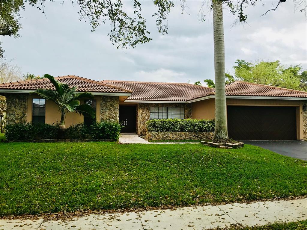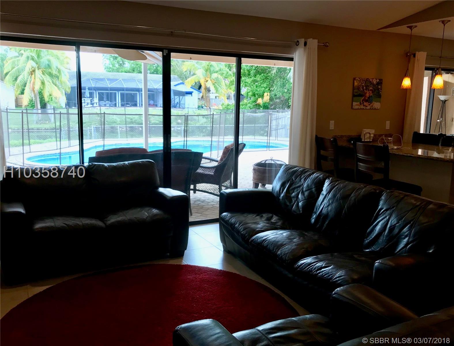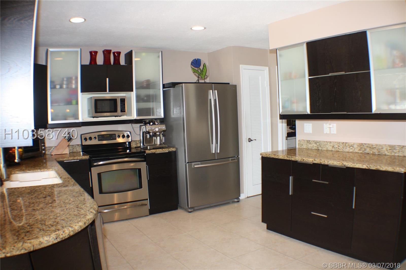 Spectacular open floor plan, vaulted ceilings, tiled flooring throughout living and kitchen, wood laminate in bedrooms and laundry room, updated kitchen with granite countertops and stainless steel appliances, modern fixtures in bathrooms. Samsung washer and dryer, and extra refrigerator in garage. Located on nicely landscaped waterfront lot and cul-de-sac street. Barrel tile roof 2009, Pool resurfaced 2016. This is one not to miss! Motivated Seller!